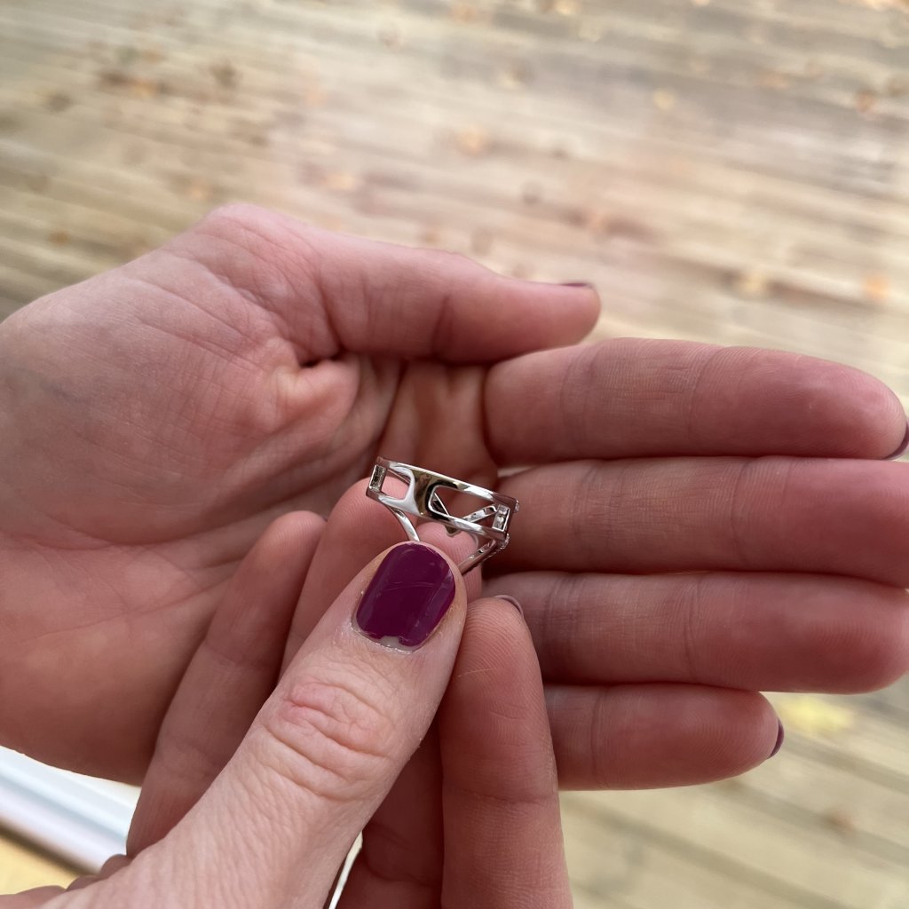 Srebrny kolor pierścionka w połączeniu z przezroczystymi cyrkoniami tworzy nowoczesny i elegancki wygląd, który z pewnością przyciągnie wzrok.