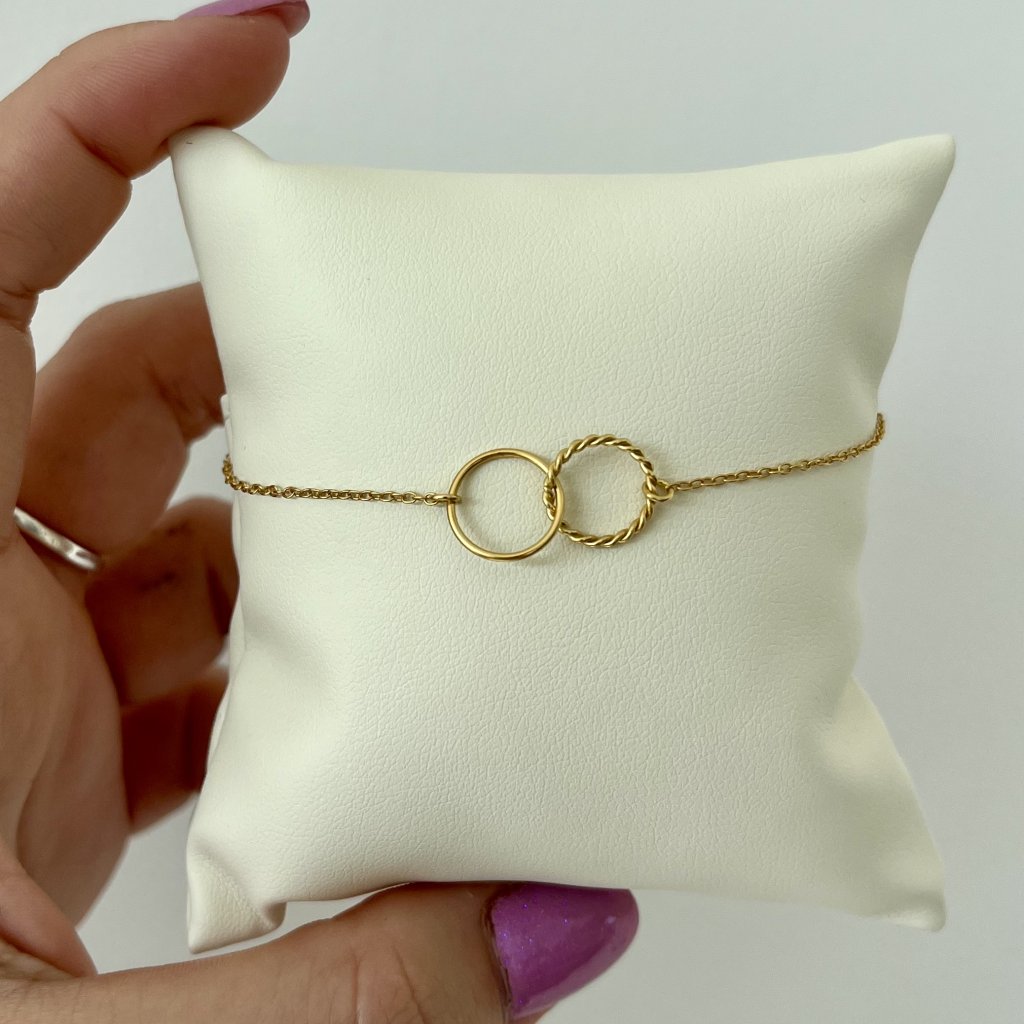 Wykonana ze srebra próby Ag925/1000 bransoletka jest pozłacana, co zapewnia jej elegancki wygląd i trwałość. Średnica pierścieni wynosi 10 mm, co jest idealnym rozmiarem dla subtelnego, ale wyrazistego efektu. Długość bransoletki wynosi 16 cm z możliwością przedłużenia o kolejne 2 cm, co sprawia, że jest wygodna w noszeniu dla każdej kobiety.
