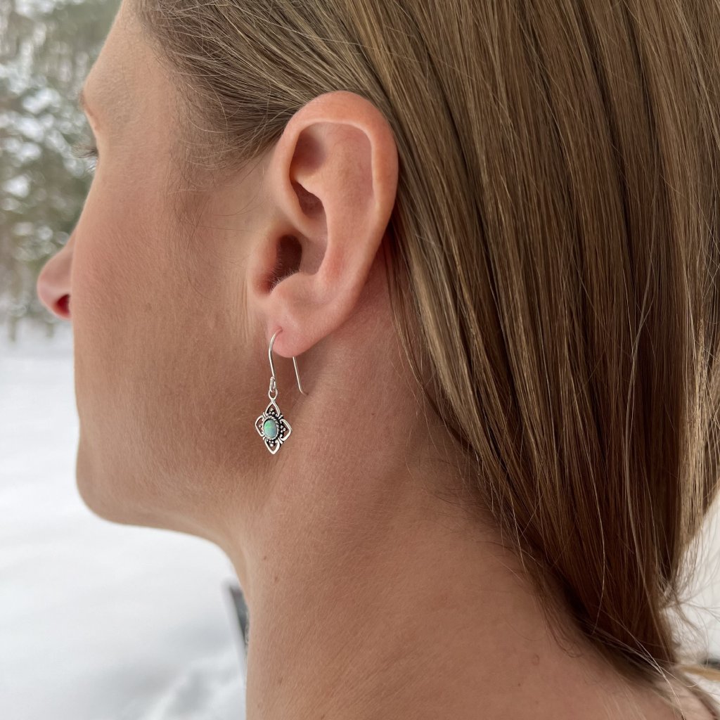 Kolczyki mają rozmiar 12x12 mm i są wyposażone w z hakiem do zawieszania, który jest praktyczny i bezpieczny do codziennego noszenia. Srebrne kolczyki z opalem są dostarczane w eleganckim pudełko upominkowe i dlatego są idealnym prezentem na urodziny, rocznice lub inne specjalne okazje.