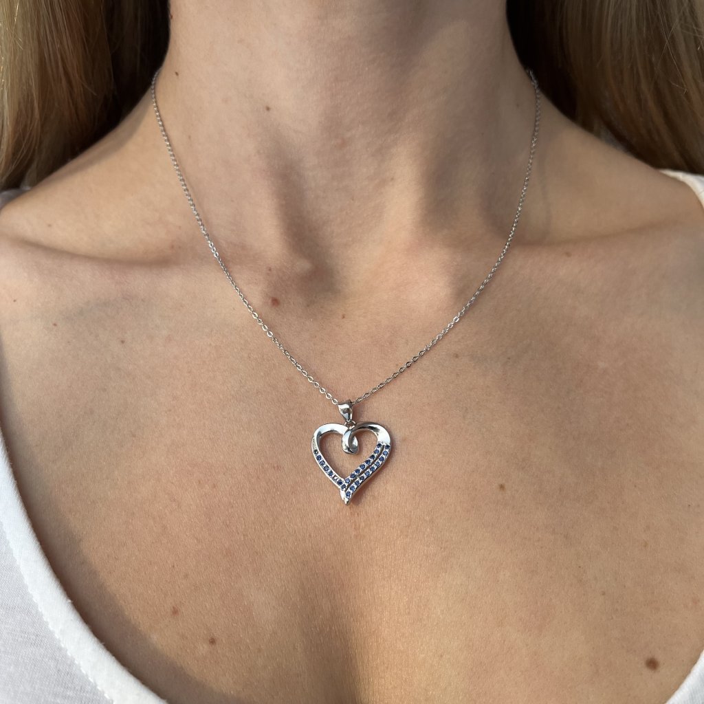 Srebrny łańcuszek z zawieszką w kształcie serca z niebieskimi cyrkoniami to biżuteria, która podkreśla wyjątkowość i piękno każdej kobiety. To idealny wybór dla tych, którzy chcą podkreślić swój urok i kobiecość. Podaruj sobie lub bliskiej osobie tę piękną biżuterię, która jest czymś więcej niż tylko dodatkiem.