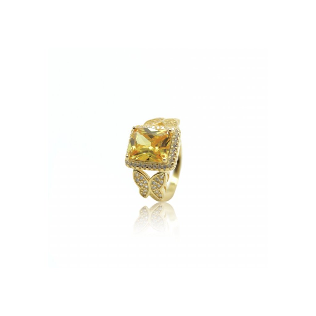 Powierzchnia pierścionka ma złote wykończenie, które doskonale uzupełnia żółtą cyrkonię sześcienną i dodaje pierścionkowi odrobinę luksusu. Połączenie kolorów żółtego, przezroczystego i złotego tworzy harmonijny wygląd.