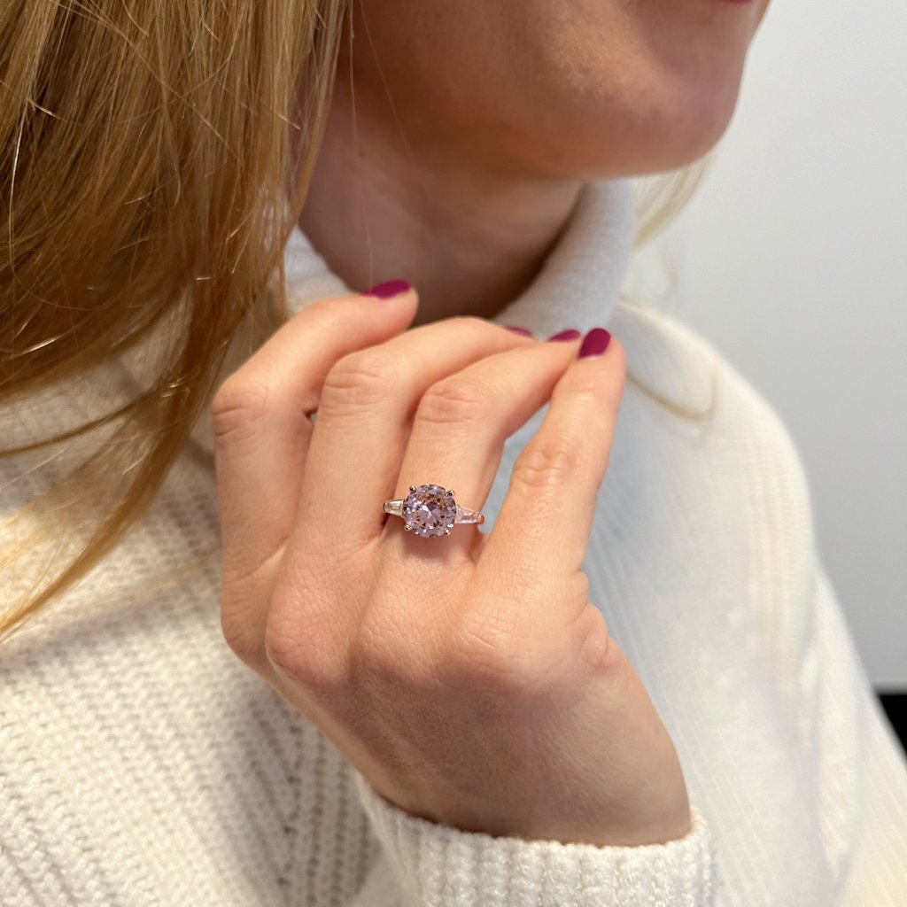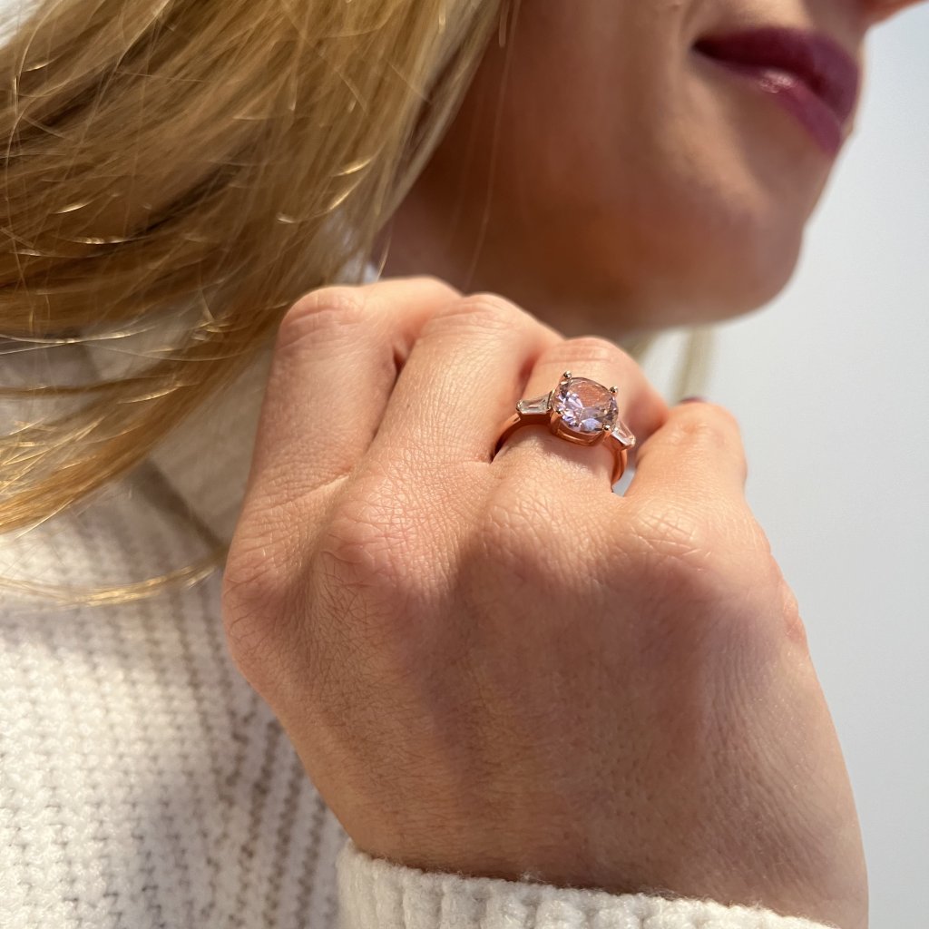 Pierścionek wykonany jest ze srebra o próbie Ag925/1000, co gwarantuje jego jakość i trwałość. Różowa cyrkonia sześcienna o średnicy 9 mm jest gwiazdą tego klejnotu i dodaje mu pięknego połysku i blasku.