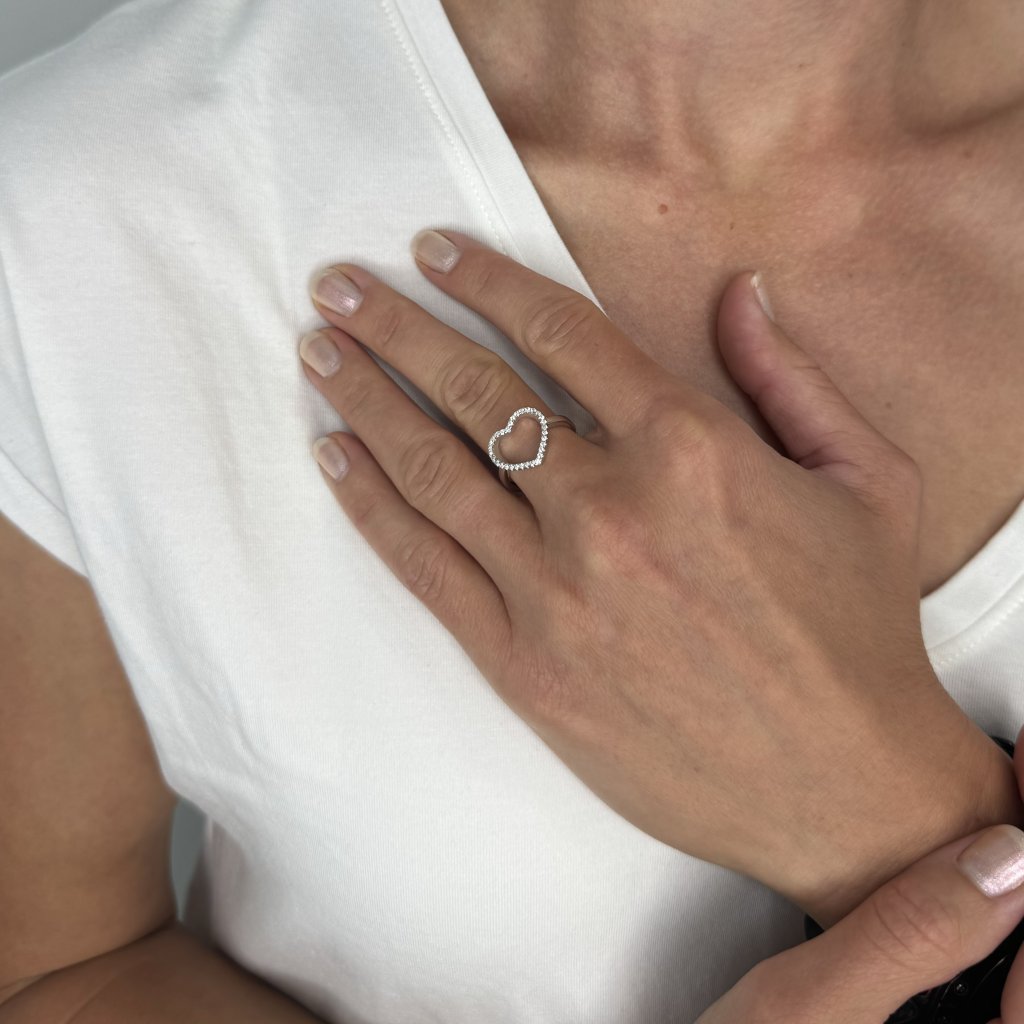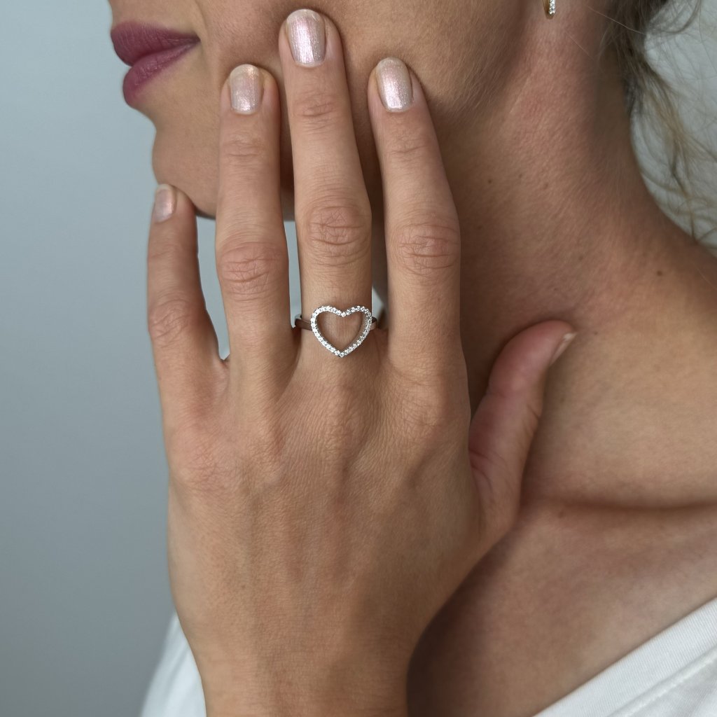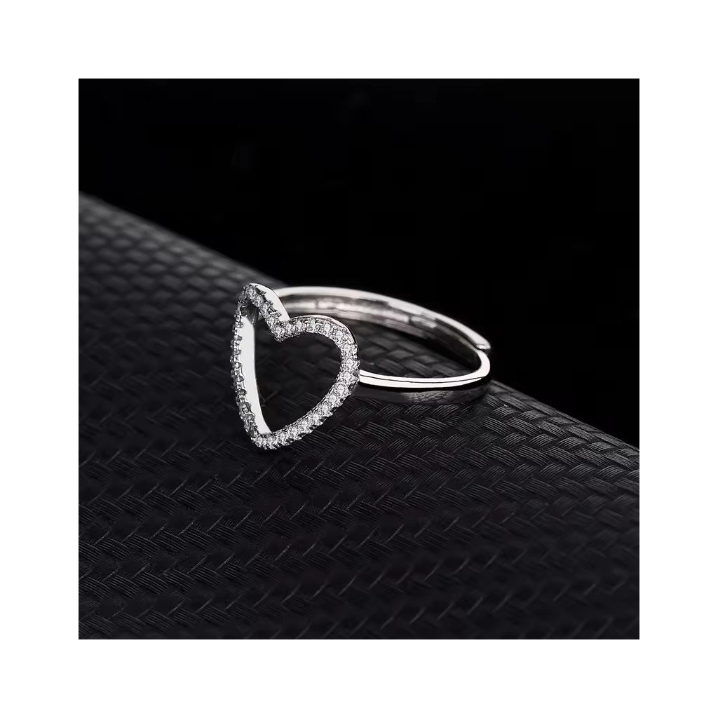 Wyraź swoją miłość i pożądanie dzięki naszemu oszałamiającemu srebrnemu pierścionkowi DESIRE. Ten regulowany pierścionek wykonany jest z wysokiej jakości rodowanego srebra Ag925/1000 i ozdobiony dużym sercem wysadzanym przezroczystymi cyrkoniami sześciennymi, symbolizującymi głębię uczuć.