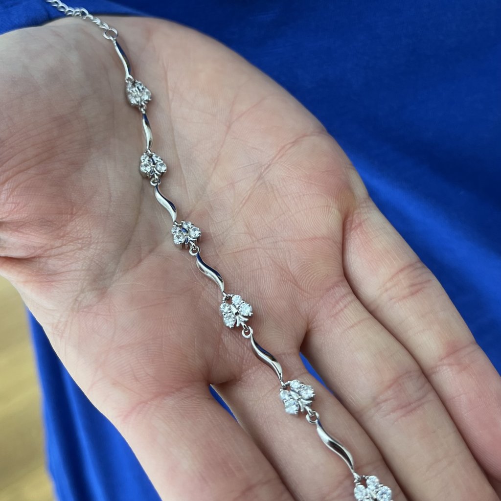 Bransoletka posiada rodowane wykończenie dla dodatkowej trwałości i połysku.
