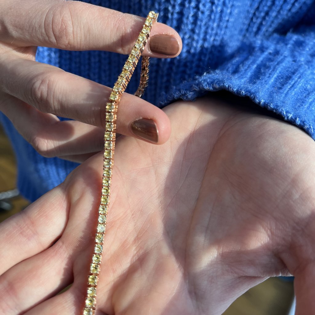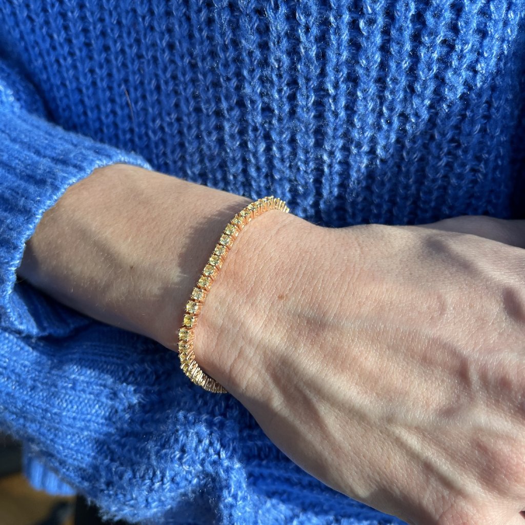 Bransoletka wykonana jest z czystego srebra próby 925/1000 i wysadzana żółtymi cyrkoniami sześciennymi, które przypominają mieniące się promienie światła. Jego powierzchnia jest pozłacana, a następnie pokryta powłoką e-coated dla zapewnienia trwałości i odporności na zarysowania.