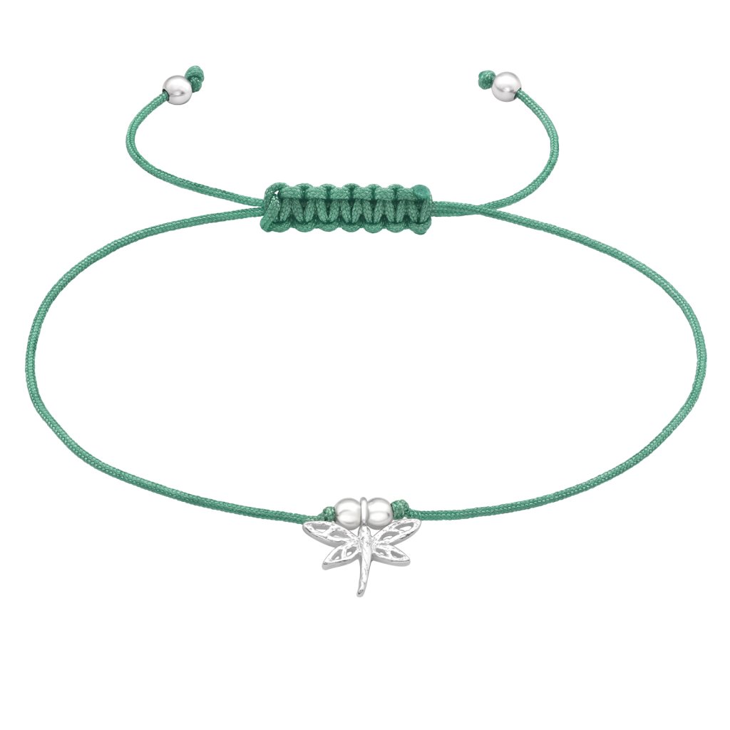 Bransoletka wykonana jest z nylonowego sznurka w żywym zielonym kolorze, który doskonale kontrastuje z błyszczącą srebrną zawieszką. Wisiorek ma wymiary 11 x 8 mm i został wykonany z wysokiej jakości srebra o czystości Ag925/1000, które zostało poddane obróbce antykorozyjnej w celu zwiększenia trwałości i wytrzymałości klejnotu.
