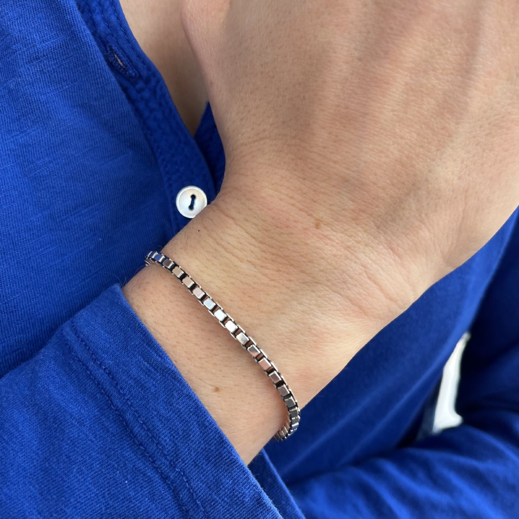 Długość 17,5 cm pasuje na większość nadgarstków, a dzięki obróbce antykorozyjnej ten klejnot zachowuje swój połysk i odporność na czas i zużycie.
