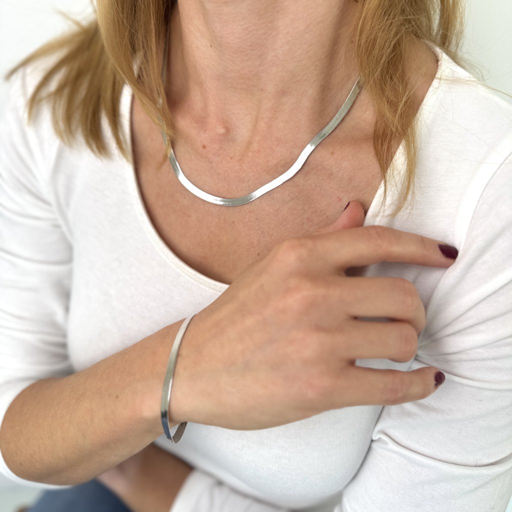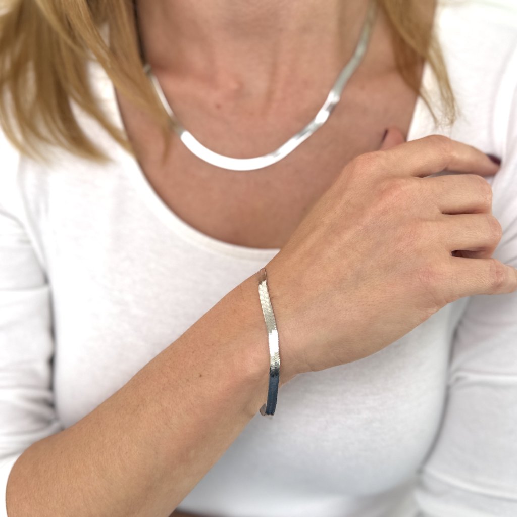 Srebrna bransoletka DYLAN to uosobienie wyrafinowanej elegancji. Dzięki długości 19 cm i szerokości 4,5 mm jest to idealny wybór dla osób poszukujących subtelnego, ale wyróżniającego się akcesorium.