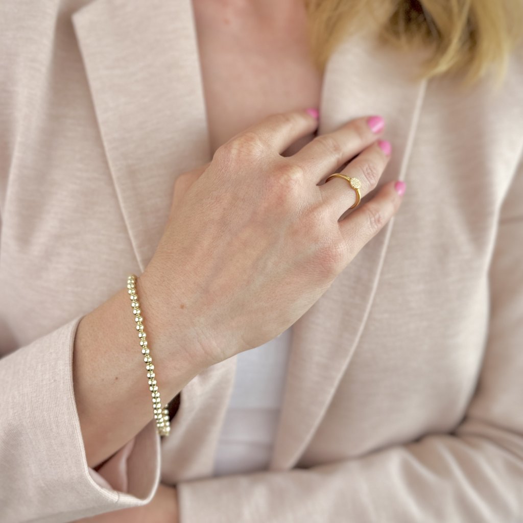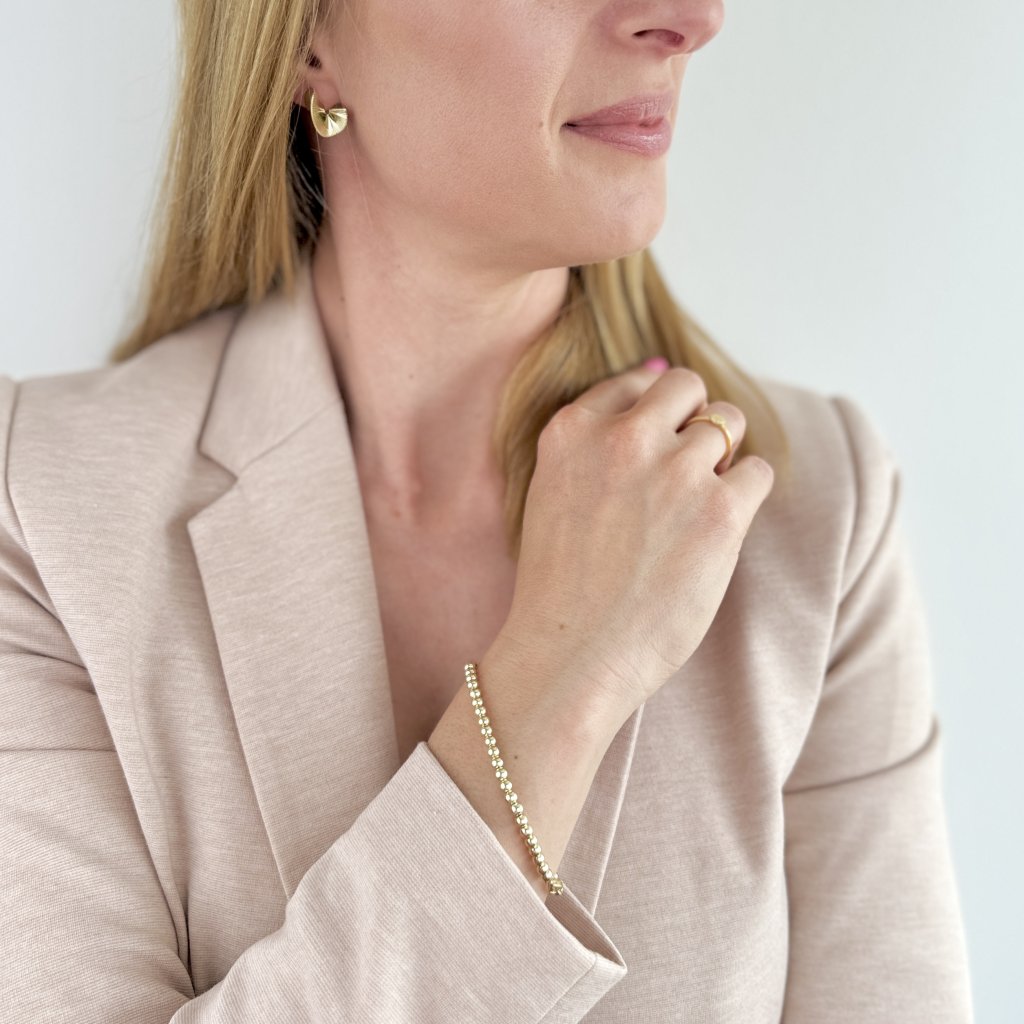 Przy długości 19 cm i szerokości 4 mm bransoleta jest idealnie wyważona - nie jest ani zbyt masywna, ani zbyt delikatna. Sferyczny design wygląda jednocześnie nowocześnie i ponadczasowo. Nadaje się zarówno do noszenia na co dzień, jak i na specjalne okazje.