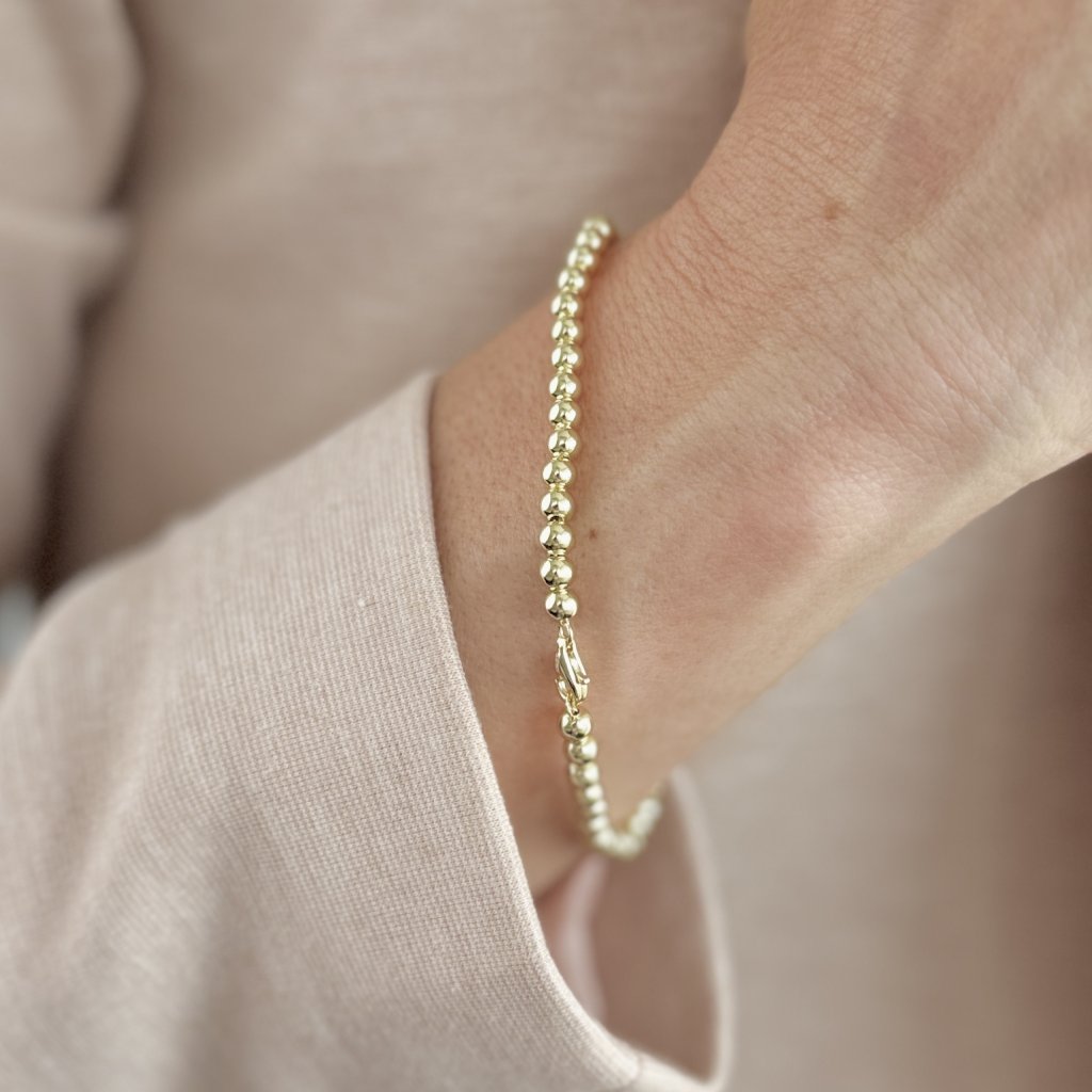 Przedstawiamy luksusową pozłacaną bransoletkę LIAM w stylu Beads, która zachwyca swoim eleganckim designem. Wykonany jest z wysokiej jakości srebra 925/1000 ze złotym wykończeniem, które nadaje klejnotowi luksusowy wygląd.