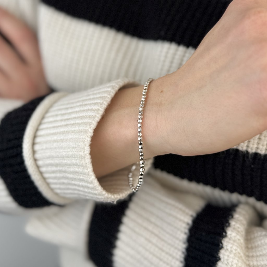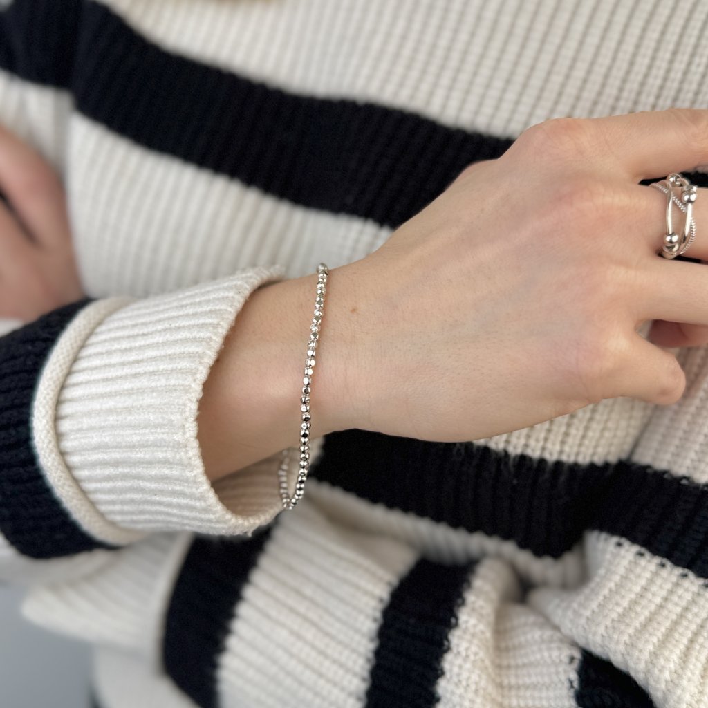 Wykonana z wysokiej jakości srebra próby 925/1000 bransoletka wyróżnia się precyzyjnym wykonaniem każdej kulki. Jego wszechstronny design sprawia, że jest odpowiedni zarówno dla mężczyzn, jak i kobiet. Jego wszechstronność sprawia, że nadaje się zarówno do strojów formalnych, jak i casualowych.