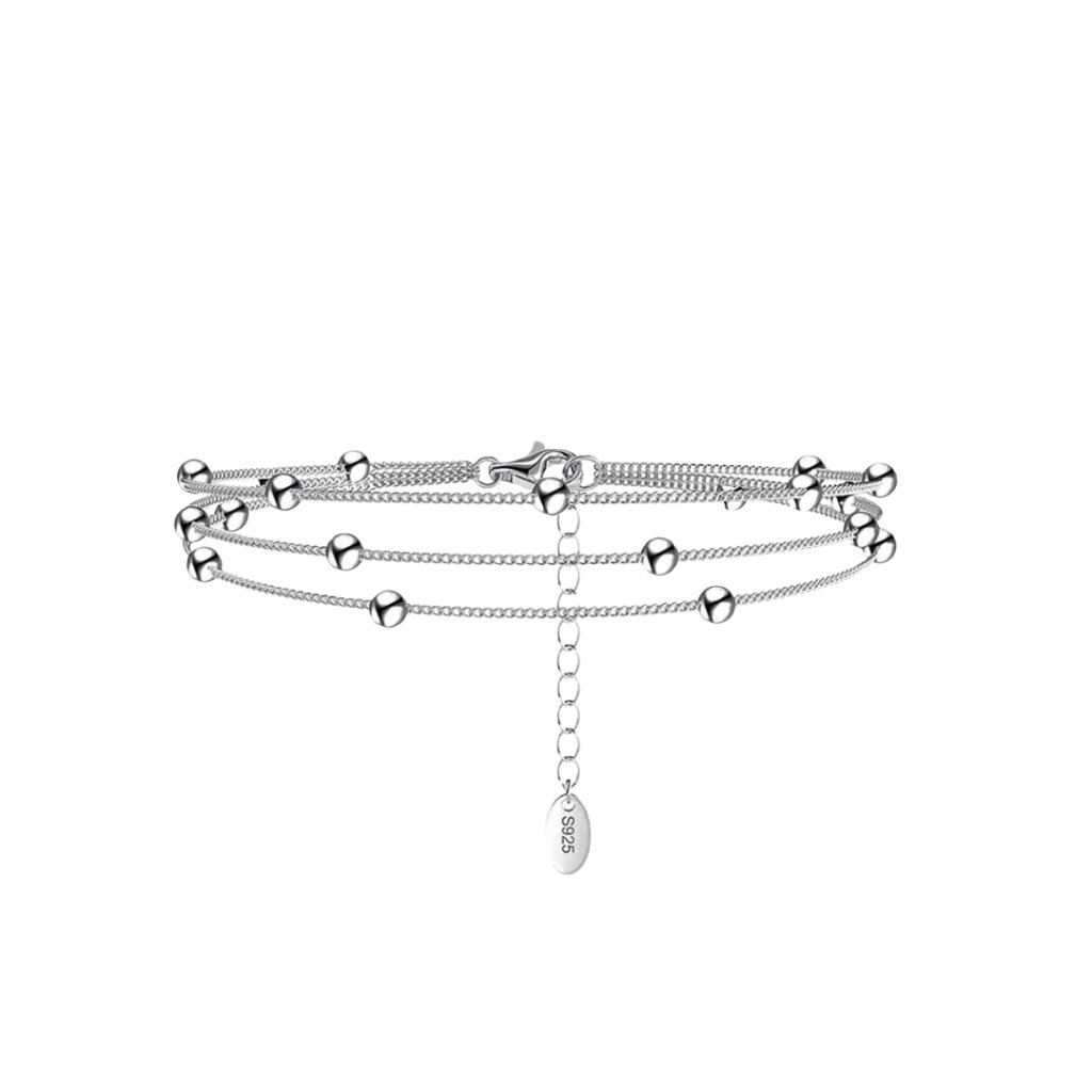 Przedstawiamy srebrną bransoletkę KASHA, która oczaruje Cię swoim wyjątkowym potrójnym designem. Ta urocza biżuteria wykonana jest z wysokiej jakości srebra próby 925/1000 i ozdobiona małymi koralikami o średnicy 3 mm, które są harmonijnie rozmieszczone na całej długości bransoletki.