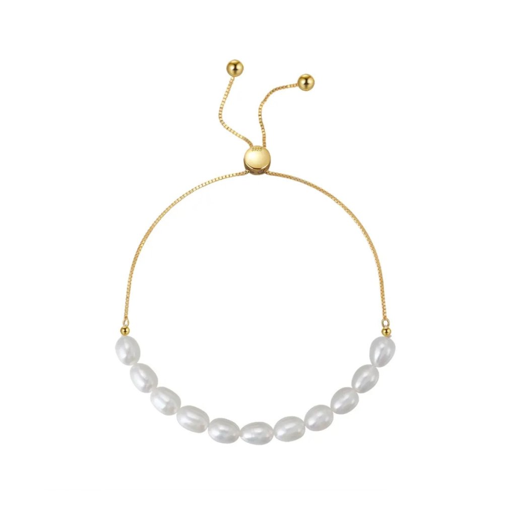 Daj się oczarować pozłacaną bransoletką EBBA, która łączy w sobie elegancję z nowoczesnym designem. Wykonany z najwyższej jakości srebra próby 925/1000 z 14-karatowym złoceniem dla uzyskania doskonałego złotego połysku. Przednią część bransoletki tworzy uroczy rząd słodkowodnych pereł o szerokości 5 mm, który płynnie przechodzi w delikatny łańcuszek o szerokości 1 mm.