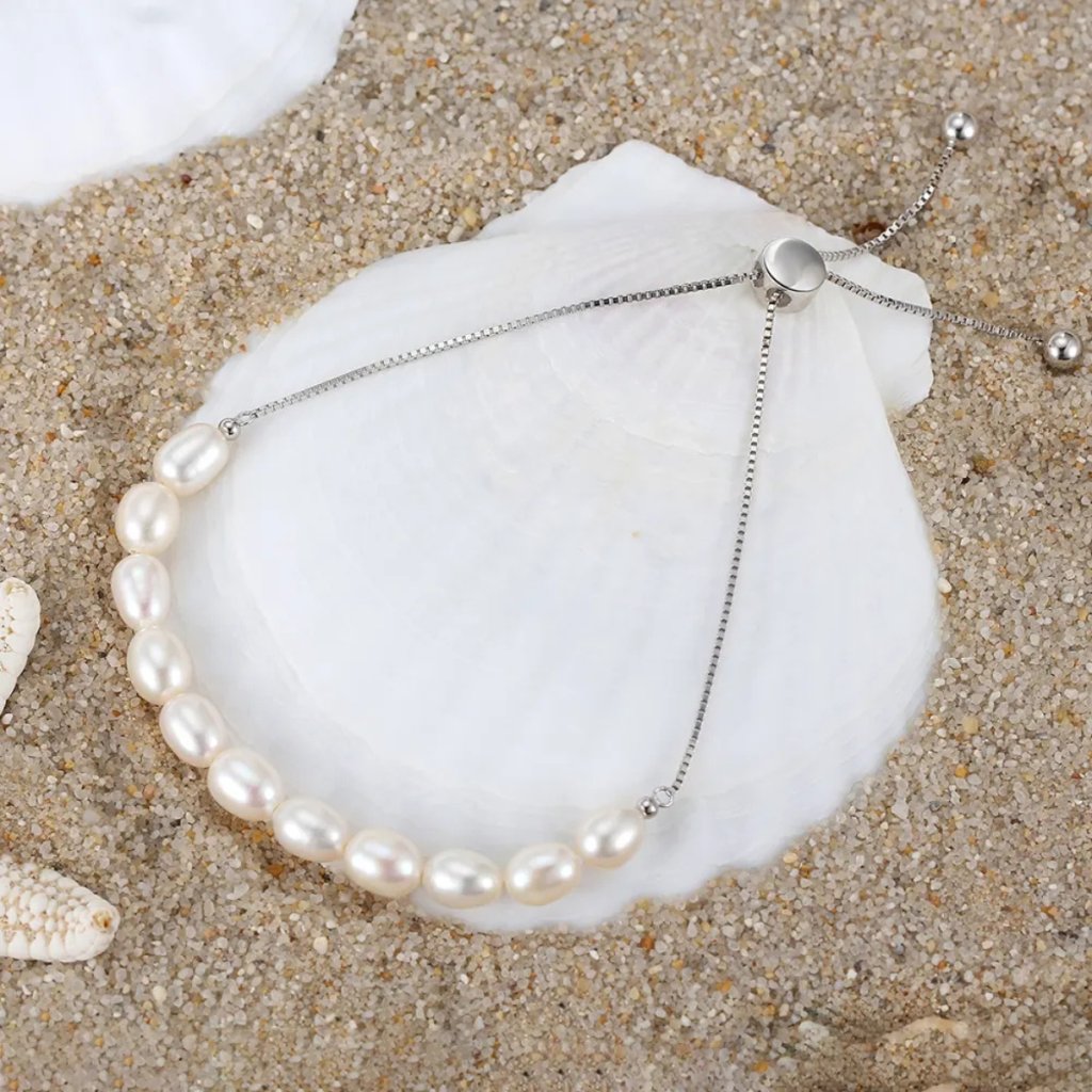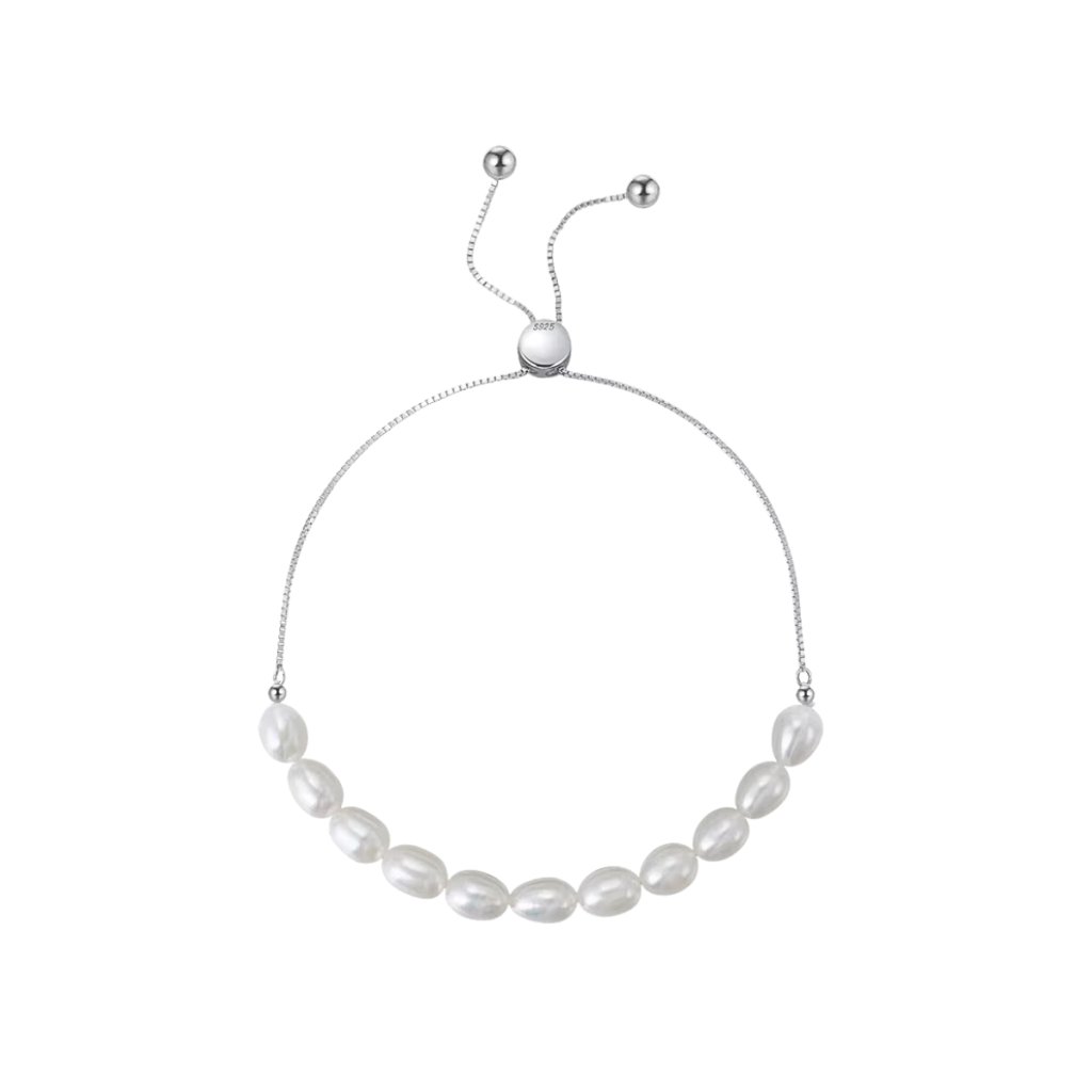 Odkryj piękno srebrnej bransoletki EBBA, która łączy w sobie elegancję z nowoczesnym designem. Wykonana z najwyższej jakości srebra próby 925/1000 z rodowanym wykończeniem dla długotrwałego blasku. Przednią część bransoletki tworzy uroczy rząd słodkowodnych pereł o szerokości 5 mm, który płynnie przechodzi w delikatny łańcuszek o szerokości 1 mm.