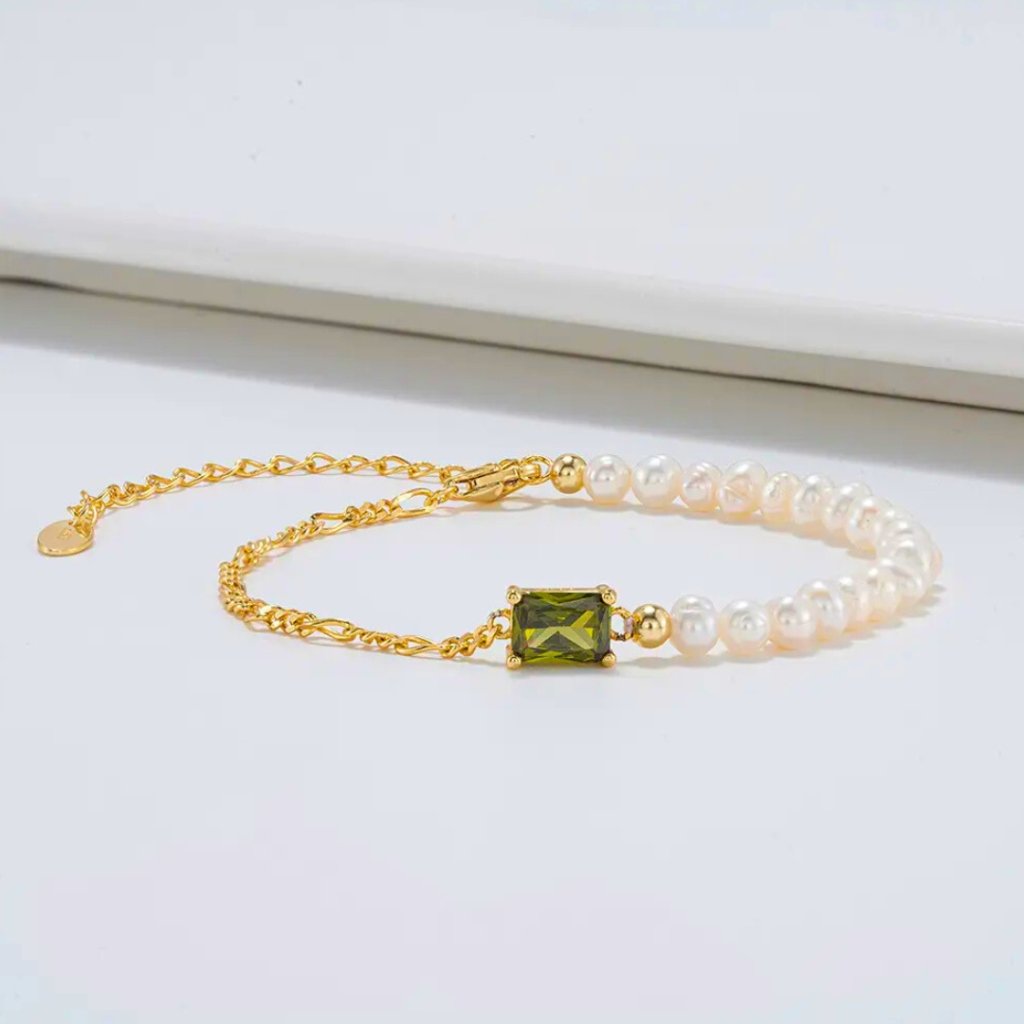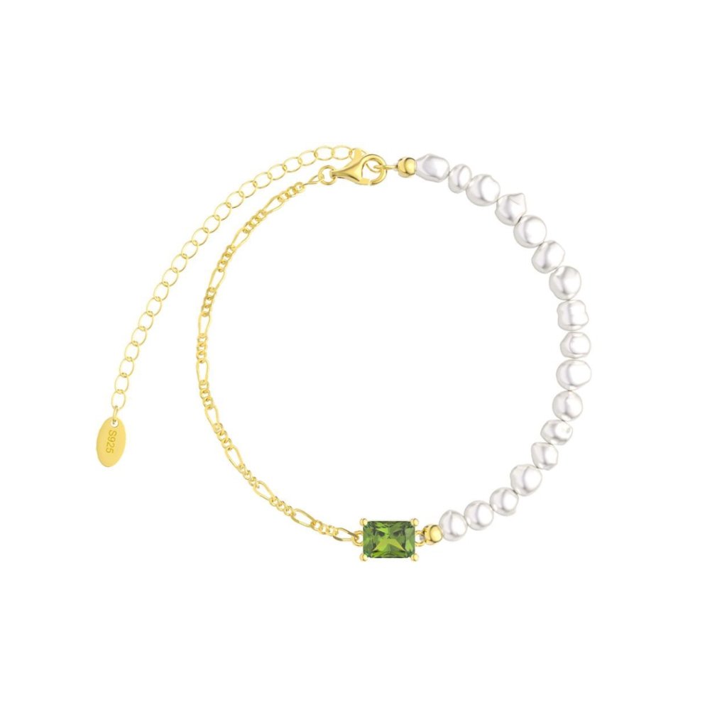 Centralnym elementem bransoletki jest efektowny zielony cyrkon o wymiarach 5 × 7 mm, który dodaje biżuterii wyrafinowanego charakteru. Bransoletka jest wykonana z wysokiej jakości srebra próby 925/1000 i pokryta luksusowym 14-karatowym złotem.