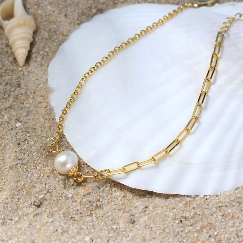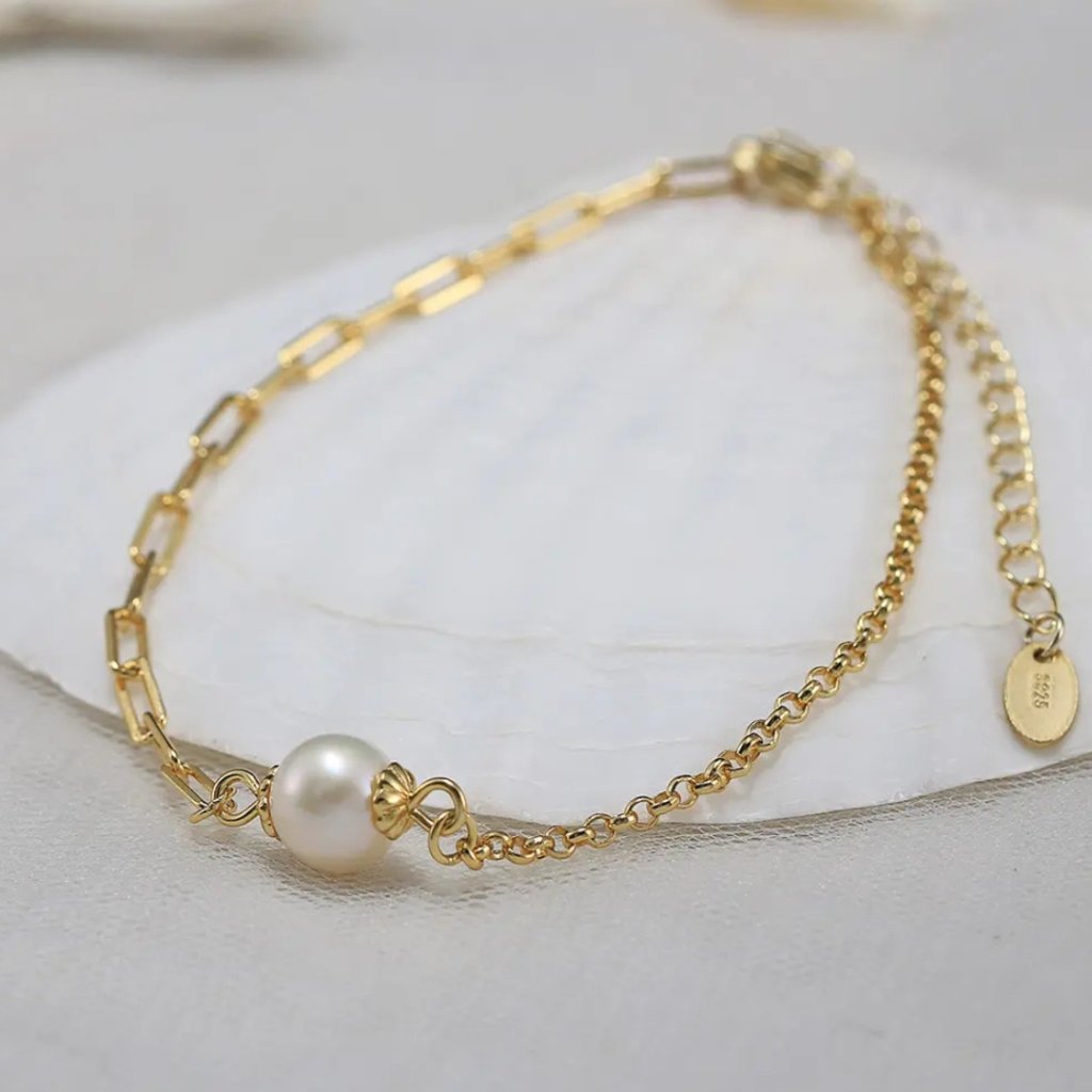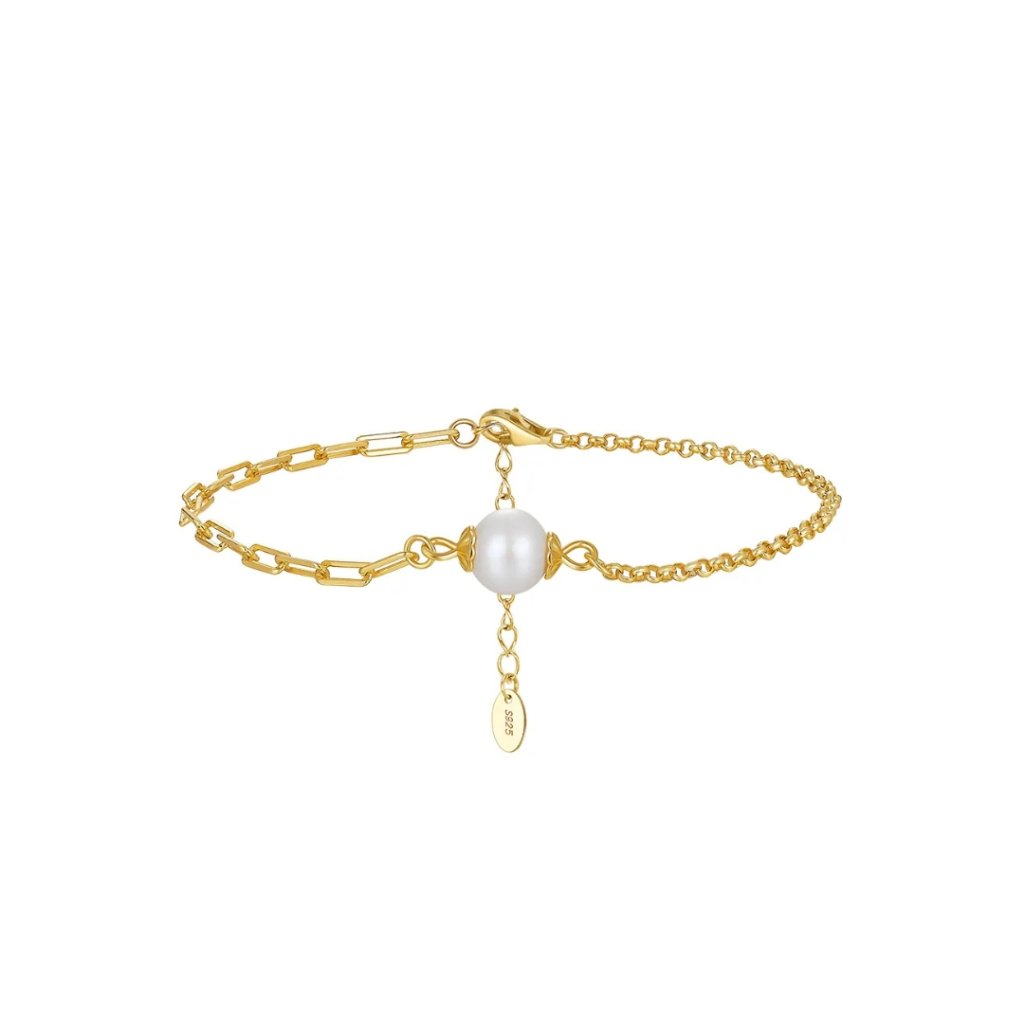 Odkryj piękno bransoletki SASUN, która stanowi doskonałą harmonię między nowoczesnym designem a klasyczną elegancją. Centralna perła słodkowodna o średnicy 7-8 mm tworzy efektowną dominantę całej biżuterii, a pozłacany łańcuszek dodaje bransoletce wyrafinowanego wyglądu.