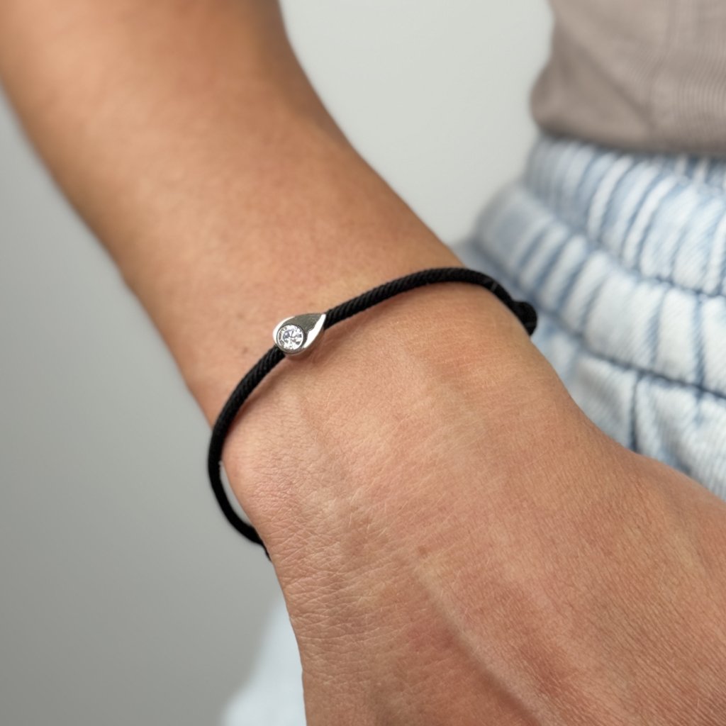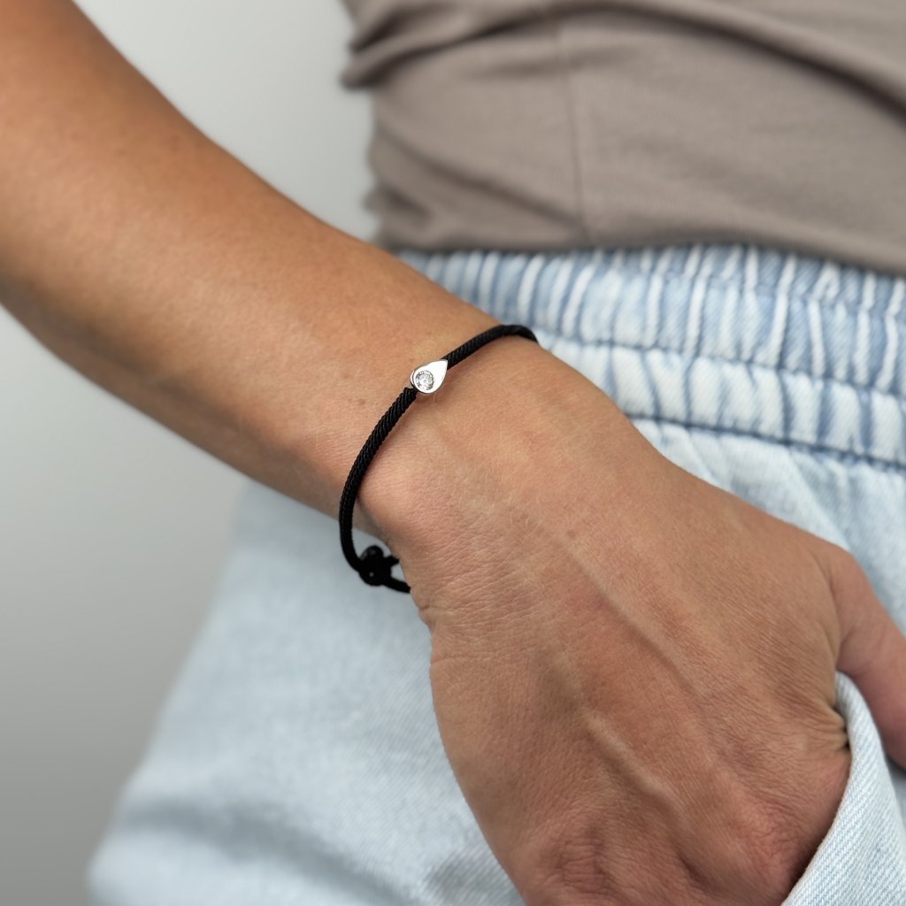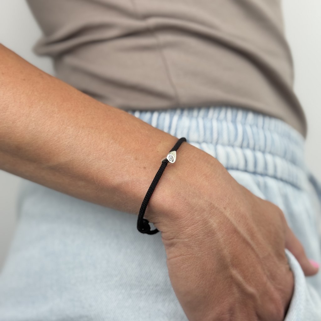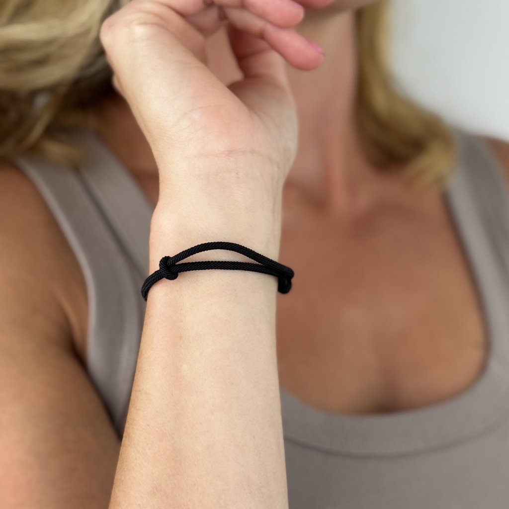 Czarny nylonowy sznurek o długości 16,5 cm z 5 cm przedłużeniem umożliwia wygodne noszenie na każdym rozmiarze nadgarstka. Szerokość 6 mm sprawia, że bransoletka jest dyskretna, a jednocześnie nie sposób jej przeoczyć.