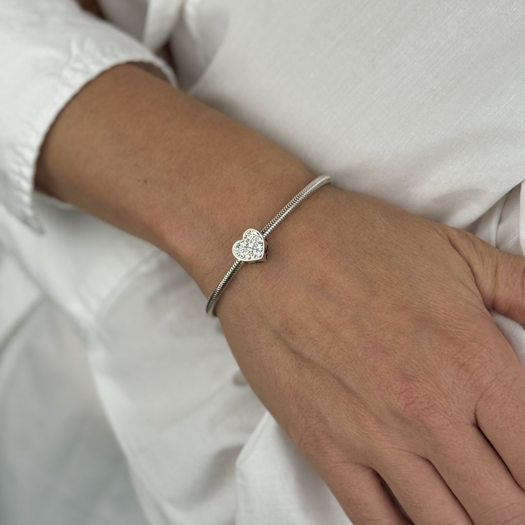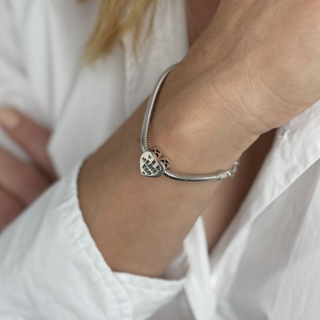 Odkryj piękno i symbolikę z wisiorkiem na bransoletkę w kształcie serca z kolekcji MAY STORY. Ten wisiorek jest mistrzowsko wykonany ze srebra próby 925 i posiada powłokę antykorozyjną, która gwarantuje długą żywotność. Jedna strona zawiera delikatny napis "I LOVE YOU", który wyraża głębokie uczucia i oddanie. Druga strona wisiorka jest ozdobiona przezroczystymi cyrkoniami, które dodają blasku i elegancji.