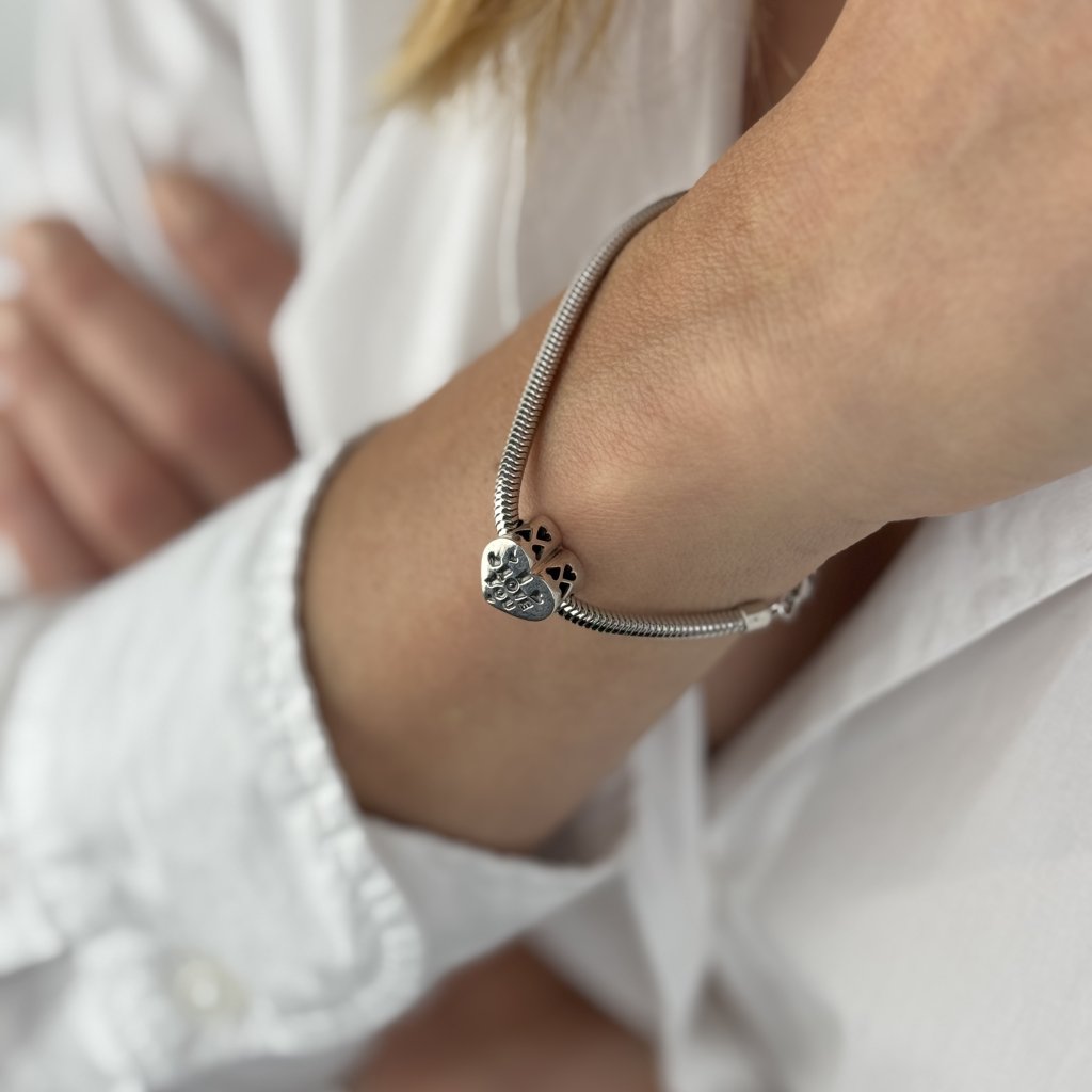 Odkryj urok i znaczenie tej zawieszki na bransoletkę w kształcie serca z kolekcji MAY STORY. Wykonana ze srebra próby 925, ten wisiorek jest pokryty powłoką antykorozyjną, zapewniającą długą żywotność. Jedna strona zawiera napis "I LOVE YOU", wyrażający głębokie uczucia i oddanie, a druga strona jest ozdobiona różowymi cyrkoniami, które dodają efektownego blasku i elegancji.