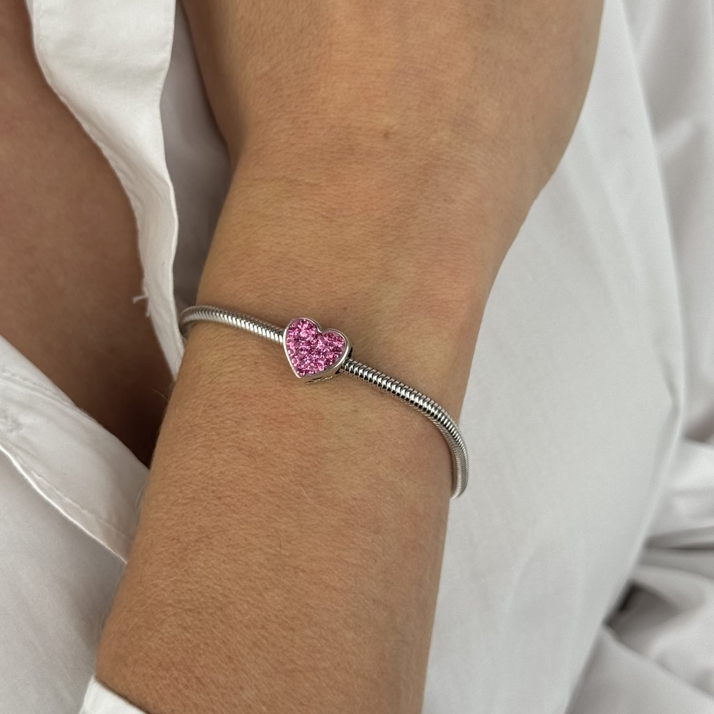 11896 MAY STORY Srebrny koralik I LOVE YOU z różowym kryształem Ag925/1000; ≤2,17 g
