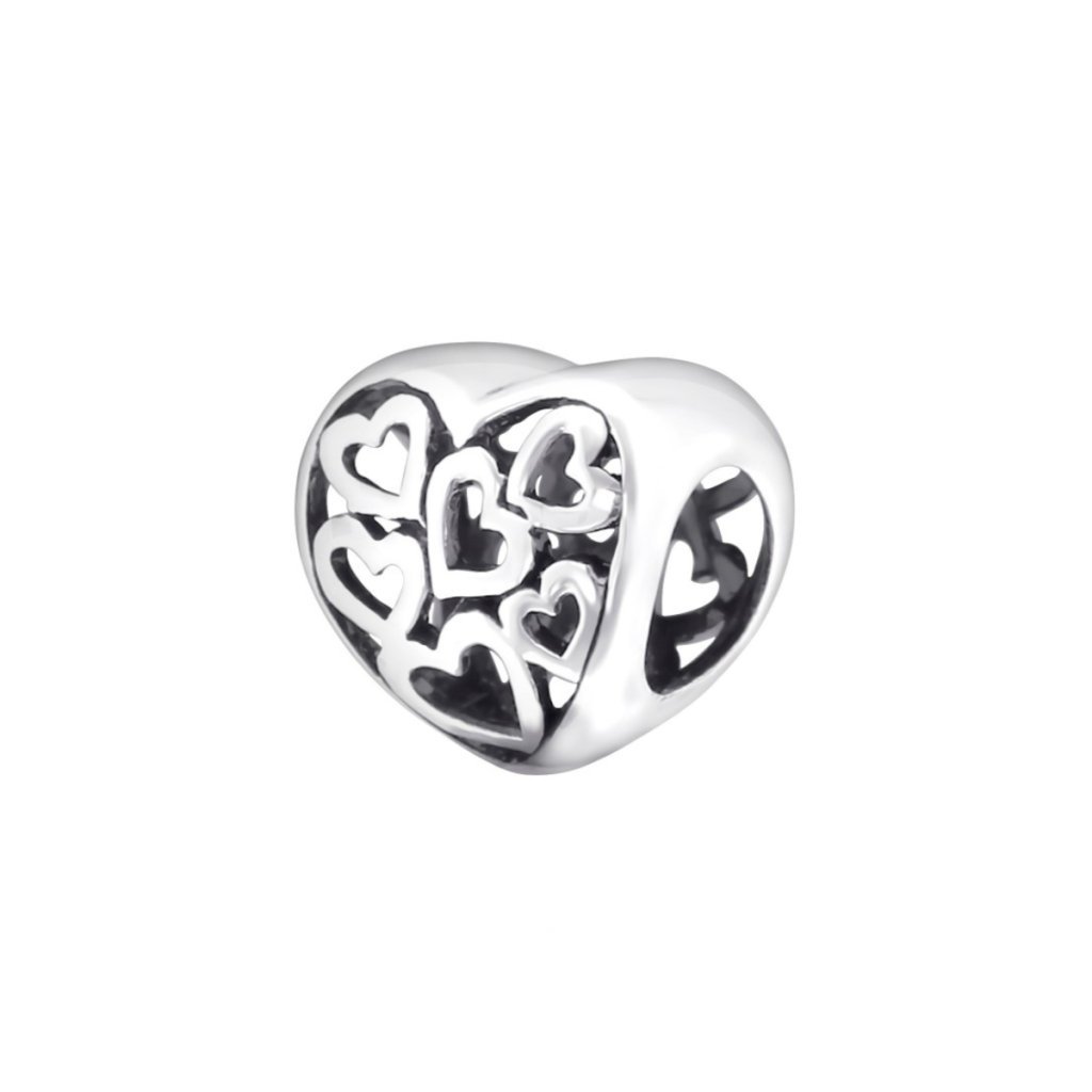 Oksydowana powierzchnia z powłoką antykorozyjną nadaje charmsowi delikatny, vintage wygląd i podkreśla detale motywu. Każde małe serduszko wewnątrz dużego serca reprezentuje wspomnienia, chwile i uczucia, które tworzą waszą miłość. Koralik jest uniwersalny i pasuje zarowno do damskich, jak i meskich bransolet o standardowej srednicy otworu 4 mm. Wymiary 10 × 11 mm gwarantują wyrazisty, ale elegancki wygląd.