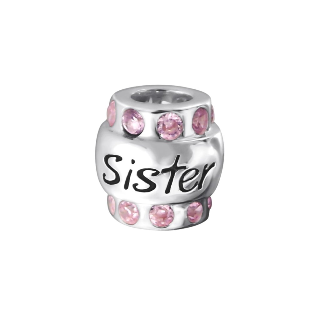 11925 MAY STORY srebrna zawieszka SISTER z różowymi cyrkoniami