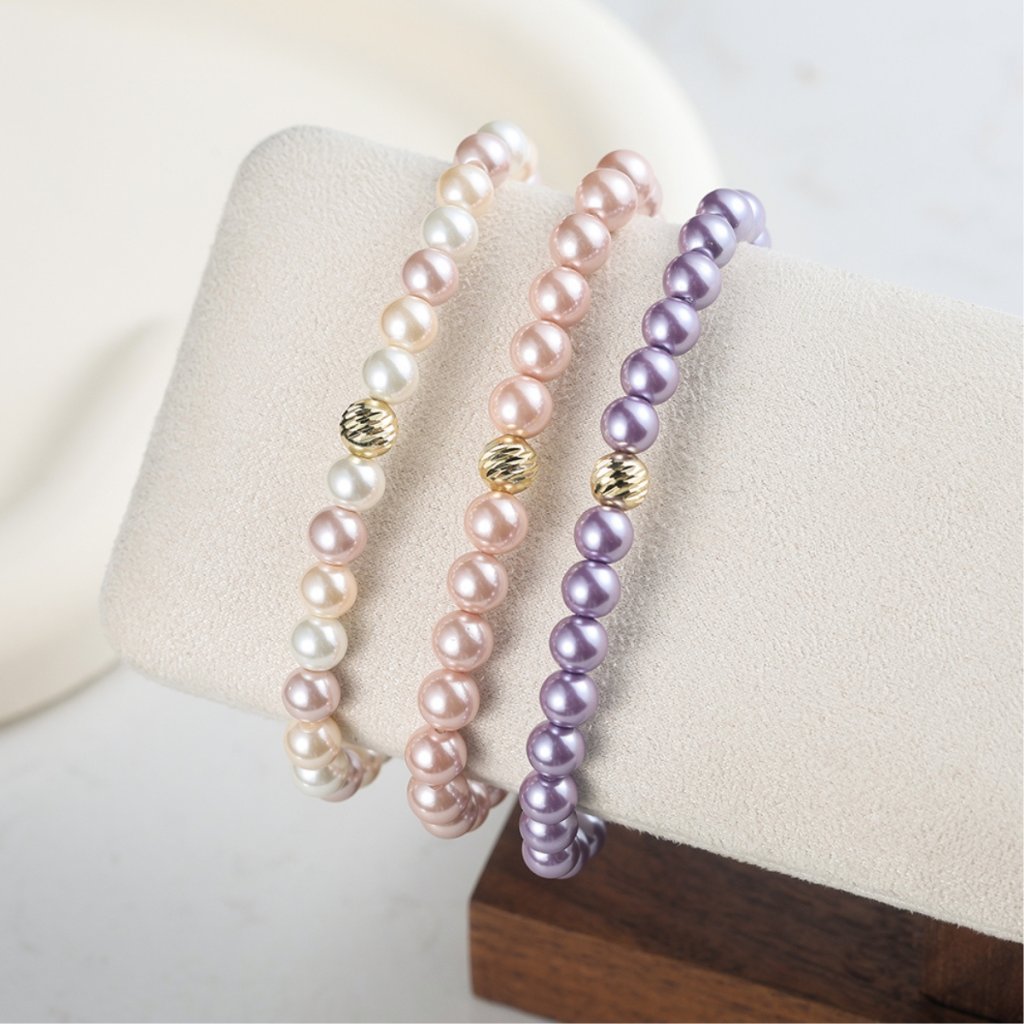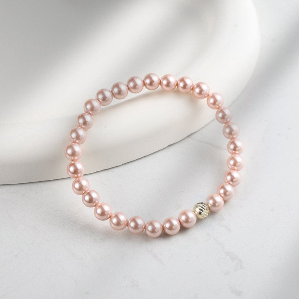 Bransoletka ozdobiona jest syntetycznymi perłami o średnicy 6 mm w delikatnych odcieniach różu i bieli, które nadają biżuterii subtelny i wyrafinowany wygląd. Delikatna pozłacana kulka służy jako subtelny akcent, podkreślający luksusowy charakter bransoletki. Długość 18 cm umożliwia wygodne noszenie i idealne dopasowanie do nadgarstka.