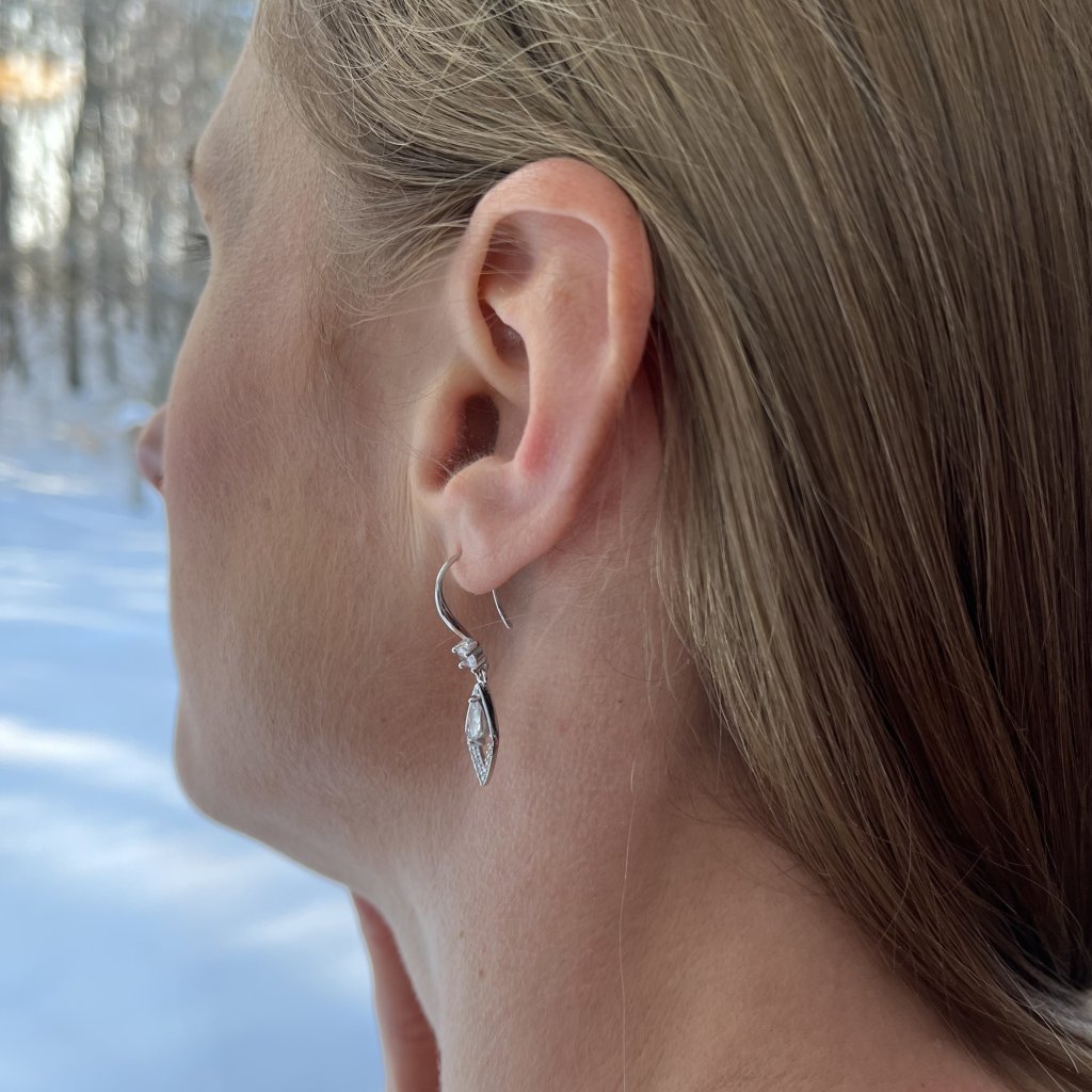 Każdy kolczyk jest również ozdobiony większym przezroczystym kamieniem, który nadaje klejnotowi delikatny i elegancki wygląd. Rodowane wykończenie zapewni, że kolczyki pozostaną piękne i błyszczące.