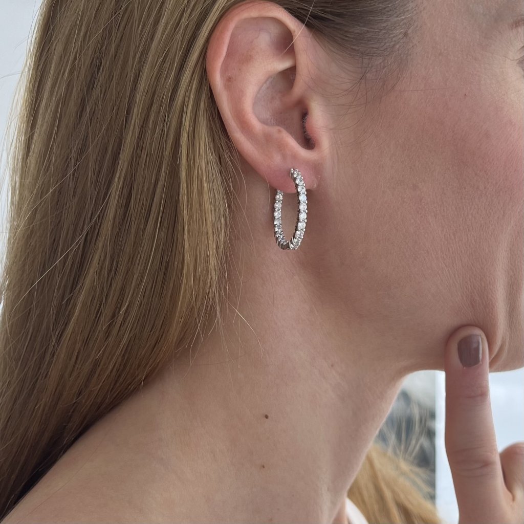 Kolczyki mają okrągły kształt i są zapinane na zatrzask, co zapewnia maksymalny komfort noszenia. Są one dostępne w kolorze przezroczystym i srebrnym, dzięki czemu stanowią świetny dodatek do każdego stroju.