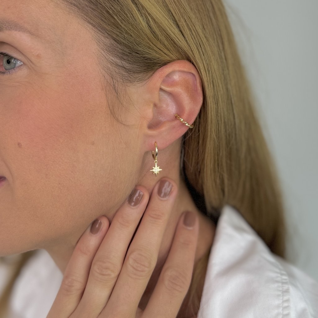 Kolczyk wykonany jest ze srebra o próbie Ag925/1000, co gwarantuje jego wysoką jakość i długą żywotność. Pozłacane wykończenie dodaje klejnotowi blasku i chroni go przed zarysowaniami i utlenianiem.