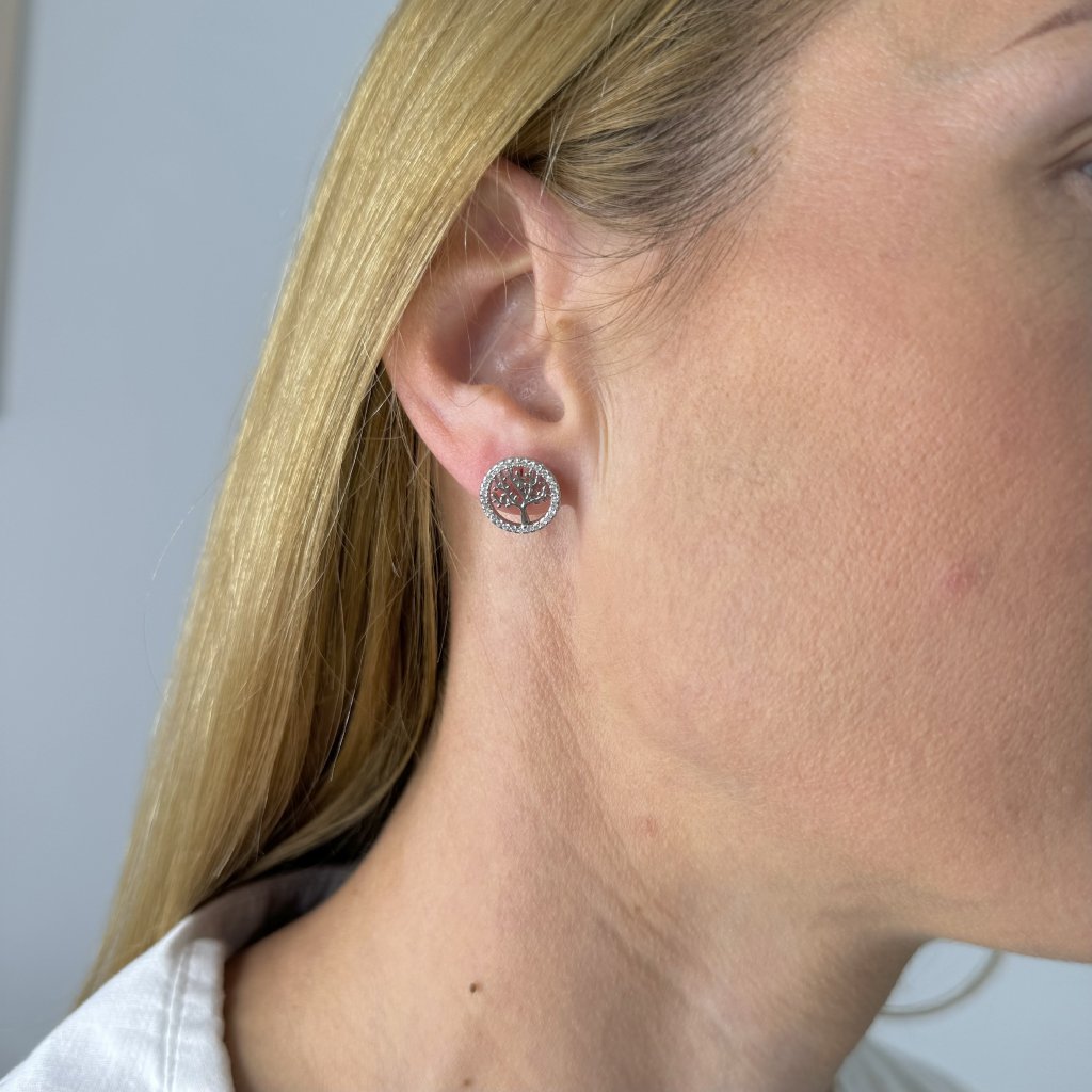 Wykonany z wysokiej jakości srebra próby 925, ten skarb jest wysadzany sześciennymi cyrkoniami, które błyszczą w kręgu otaczającym drzewo życia. Jest symbolem siły, mądrości i nieśmiertelności. Dzięki tym kolczykom zawsze będziesz mieć przy sobie ten potężny symbol. Średnica okręgu wynosi 12 mm.