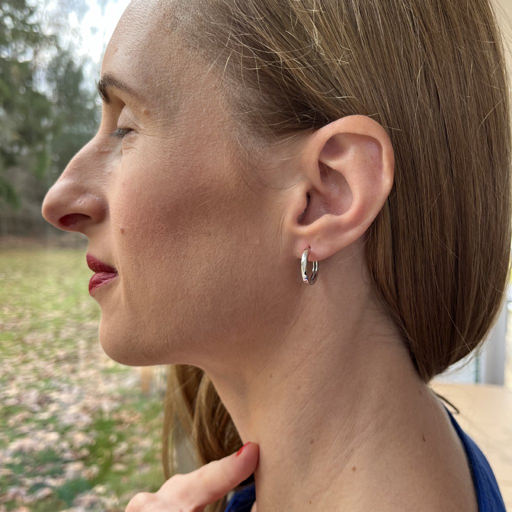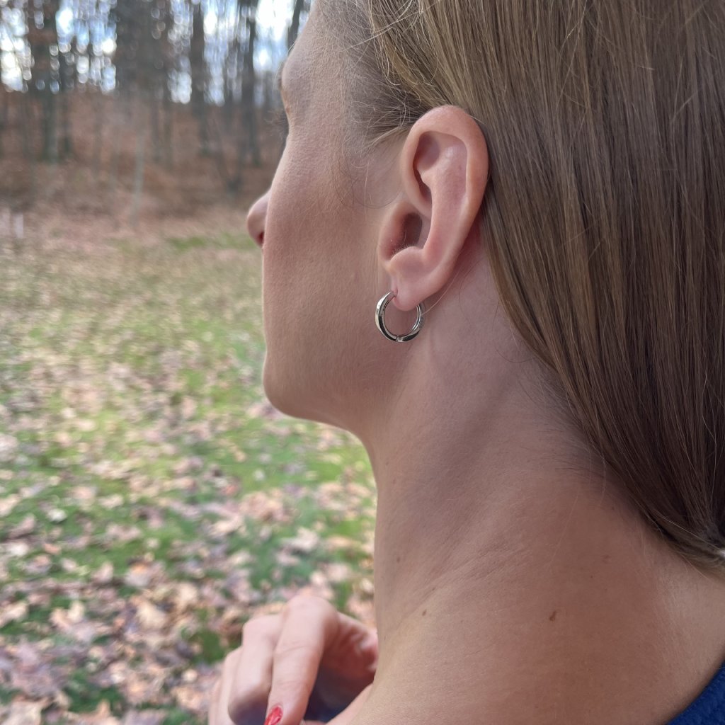 Kolczyki o średnicy 16 mm są subtelnie wyraziste, a jednocześnie wygodne do noszenia przez cały dzień. Zapięcie na kółeczko zapewnia łatwe zakładanie i bezpieczne noszenie, dzięki czemu kolczyki te są praktycznym, a jednocześnie eleganckim dodatkiem.
