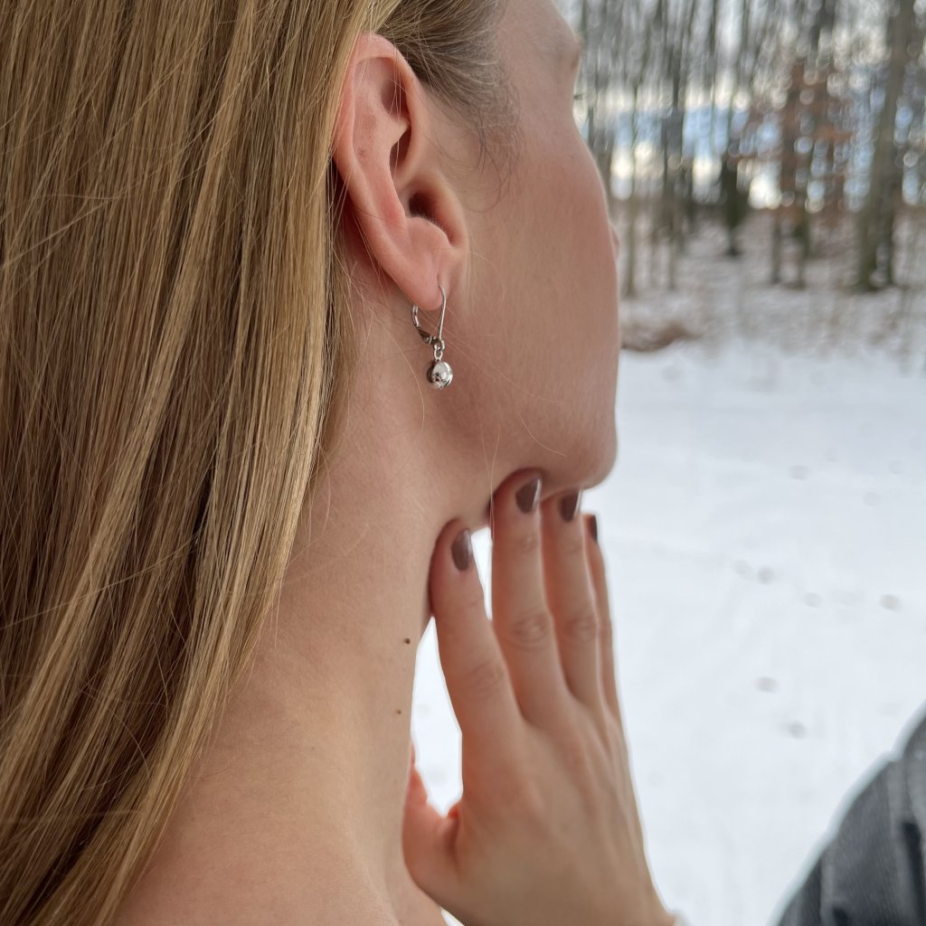 Wykonany z najczystszego srebra próby Ag925/1000, ten minimalistyczny element posiada delikatną kulkę, która dodaje wyrafinowanego uroku każdemu Twojemu ruchowi. Te wiszące kolczyki z zawieszką o średnicy 5 mm są esencją delikatności i wyróżniają się w każdej sytuacji, od codziennego noszenia po specjalne wydarzenia.
