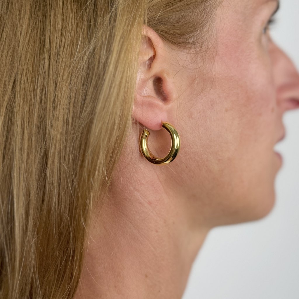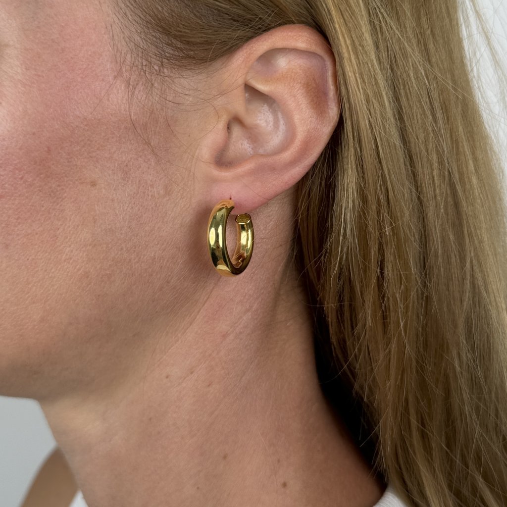 Te kolczyki w kształcie kół o średnicy 24 mm i szerokości 5 mm zachwycają prostym, ale efektownym designem. Gładka, błyszcząca powierzchnia dodaje biżuterii odrobinę luksusu i elegancji. Nadają się zarówno do noszenia na co dzień, jak i na specjalne okazje i wydarzenia towarzyskie.
