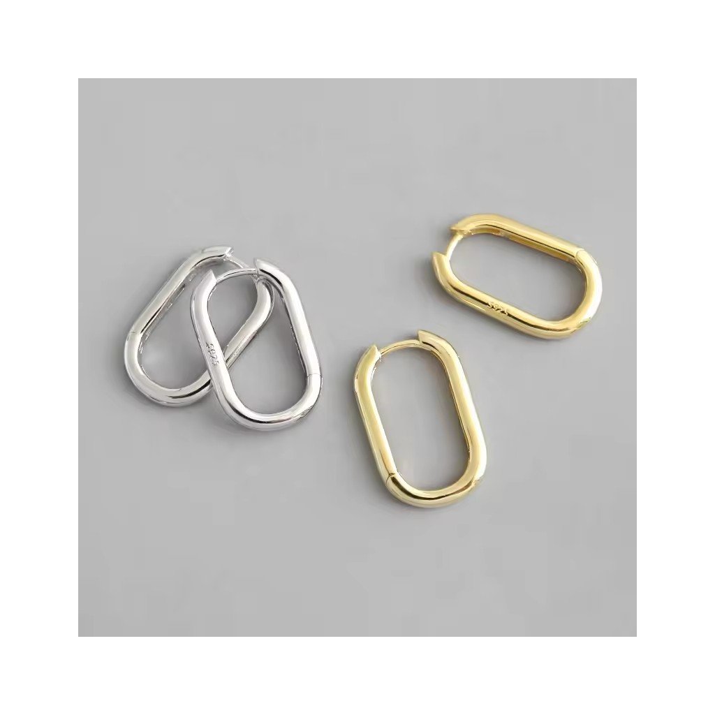 Odkryj magię prostoty z naszymi pozłacanymi srebrnymi kolczykami CECILE. Te minimalistyczne okrągłe kolczyki o wymiarach 15 × 24 mm są wykonane z wysokiej jakości srebra próby Ag925/1000, które jest następnie pozłacane w celu uzyskania luksusowego wyglądu.