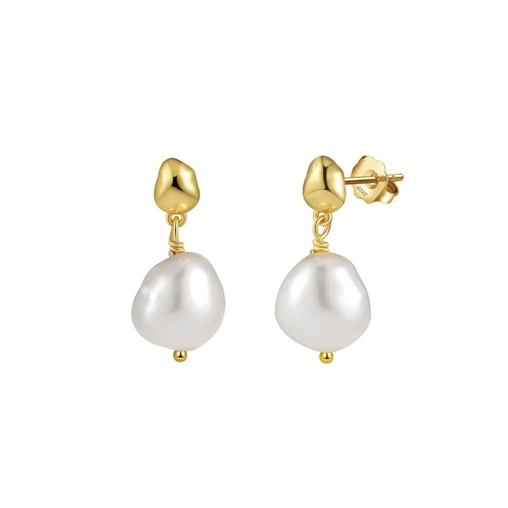 Pozłacane kolczyki BRINEE to doskonała harmonia między prostotą a elegancją. Przy całkowitej długości 21 mm tworzą uroczy wygląd, w którym główną rolę odgrywają delikatne perły słodkowodne o średnicy 9 mm, które wdzięcznie zwisają z zapięcia typu sztyft.