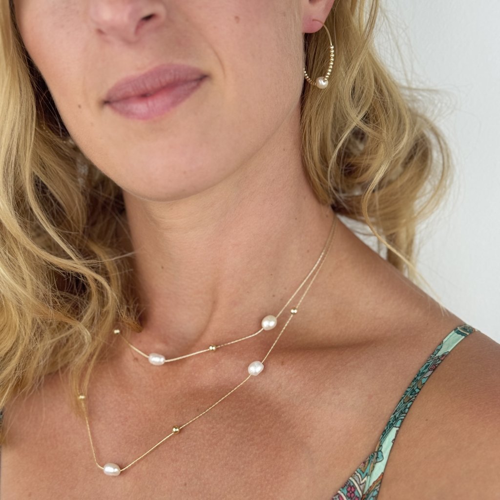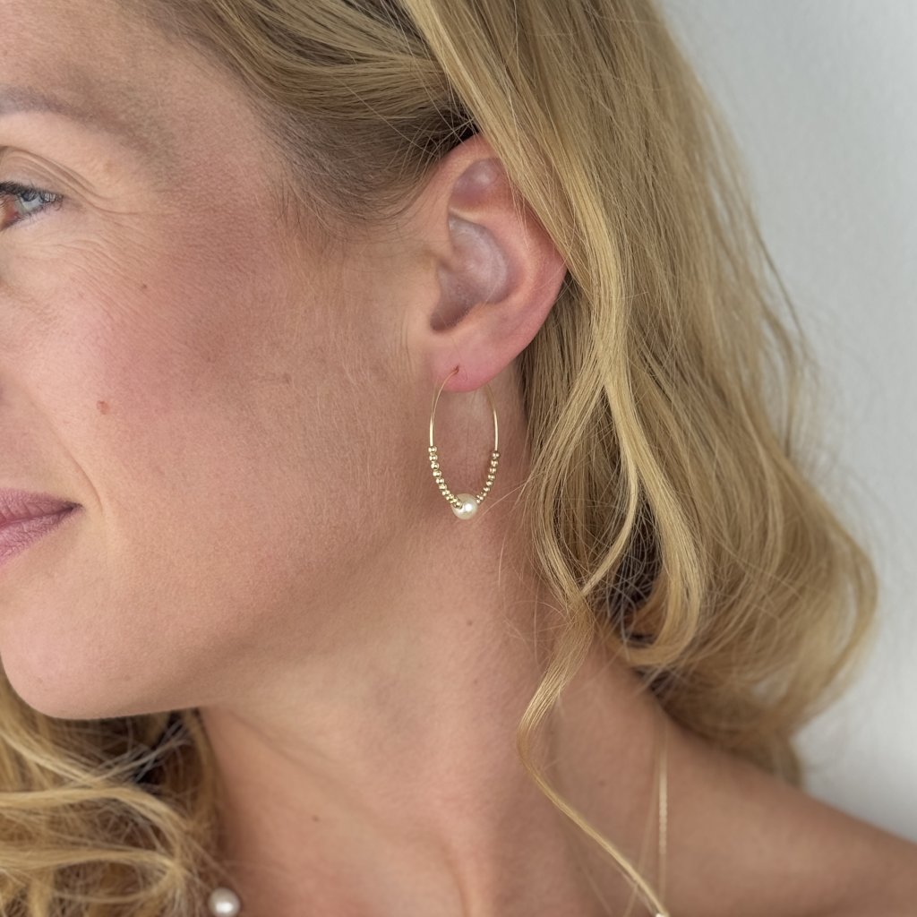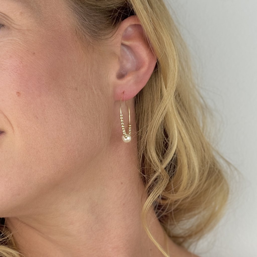 Pozłacane kolczyki BRIANNY to wyjątkowe połączenie nowoczesnego designu i klasycznej elegancji. Dzięki całkowitej długości 33 mm tworzą efektowny wygląd, w którym główną rolę odgrywa piękna perła słodkowodna o średnicy 5 mm, którą harmonijnie uzupełniają drobne pozłacane kuleczki.