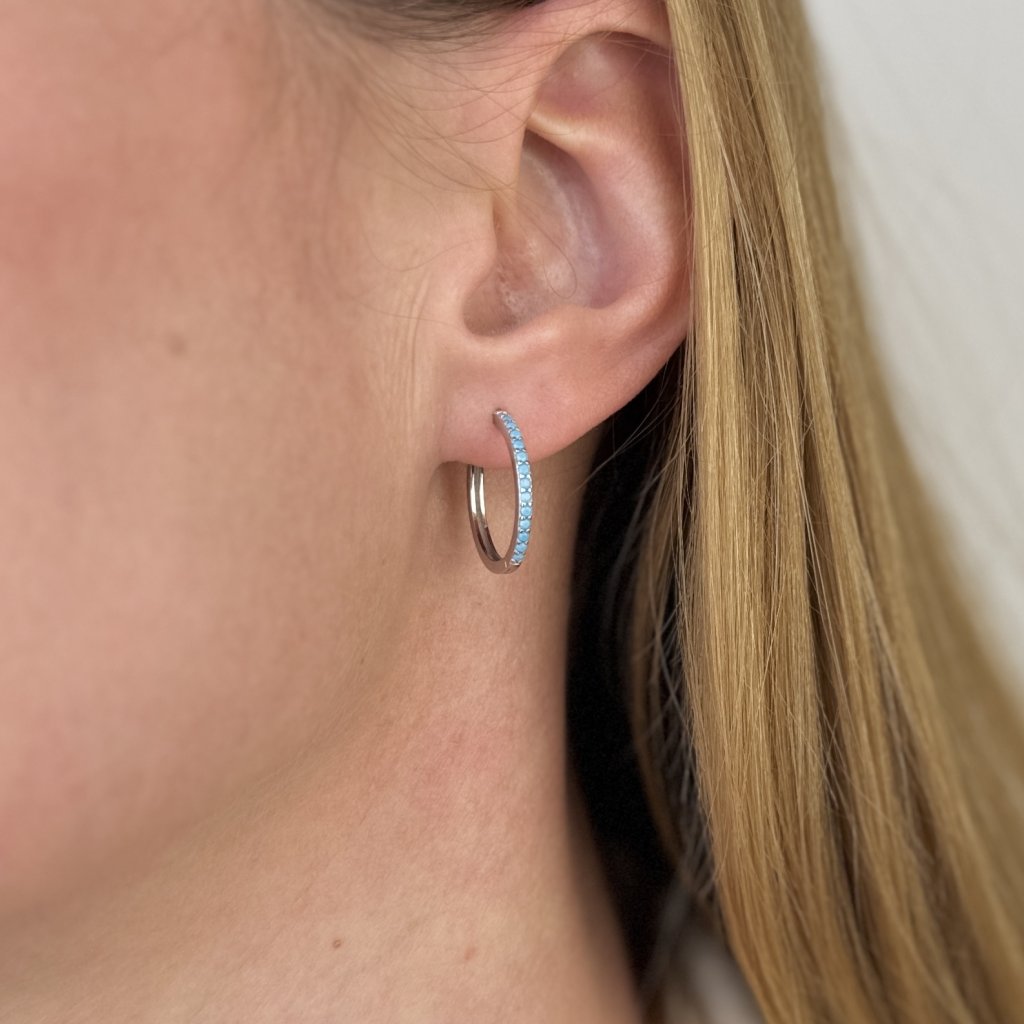 Srebrne kolczyki BARICA to doskonałe połączenie elegancji i naturalnego piękna. Ich okrągły kształt o średnicy 20 mm sprawia wrażenie lekkości i wyrafinowania, a szerokość kółka 1 mm zapewnia delikatny i kobiecy wygląd. Przednią część kolczyków zdobią osadzone turkusowe kamienie, które nadają biżuterii wyjątkowy charakter.