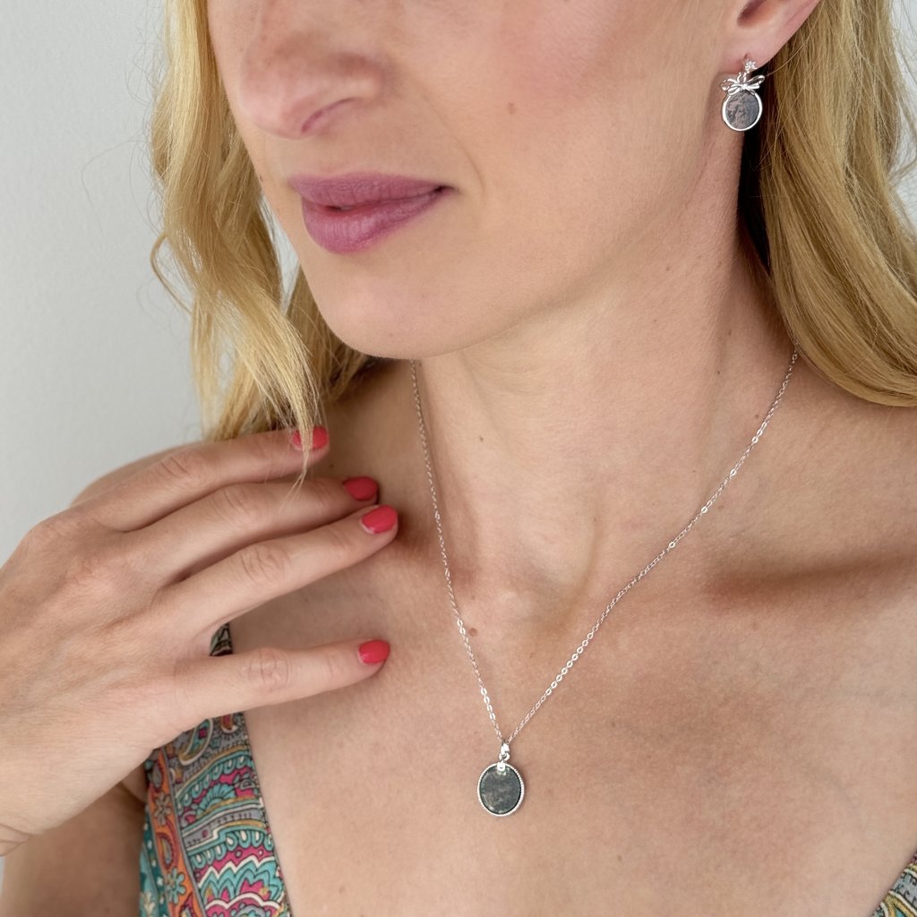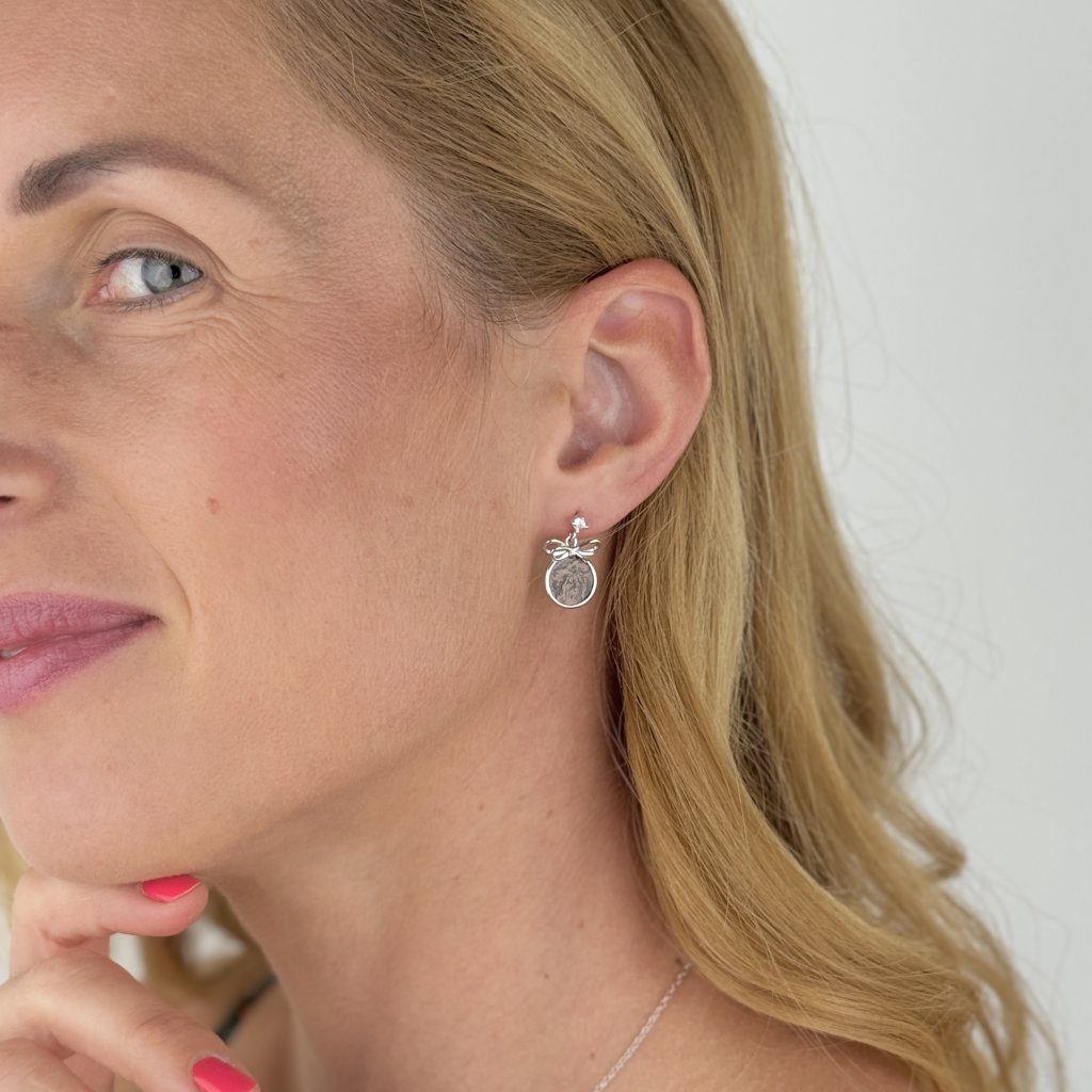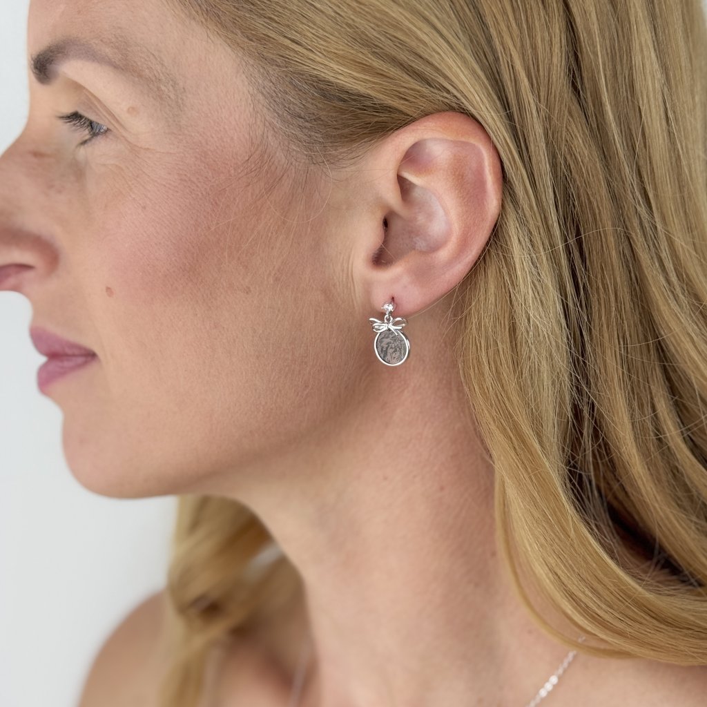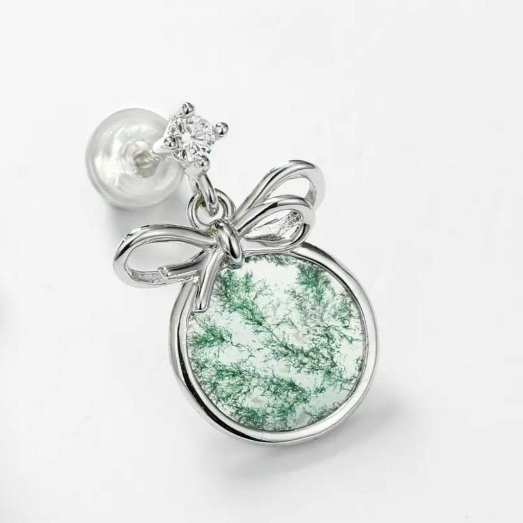 Wykonane z wysokiej jakości srebra próby 925/1000 z rodowanym wykończeniem zapewniają długotrwały blask i wytrzymałość. Uroczy motyw kokardki z błyszczącymi cyrkoniami dodaje biżuterii iskry i lekkości, a agat mszysty wnosi naturalny element.
