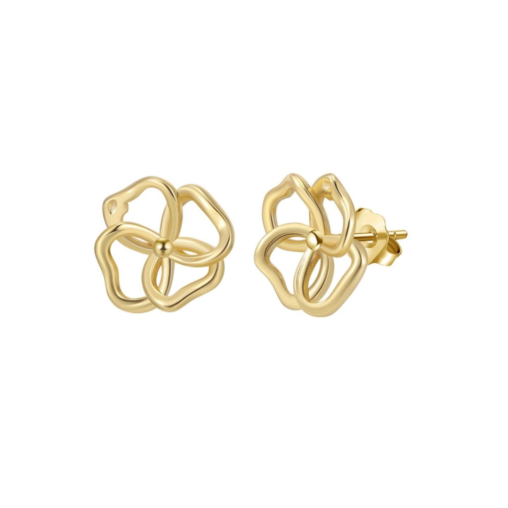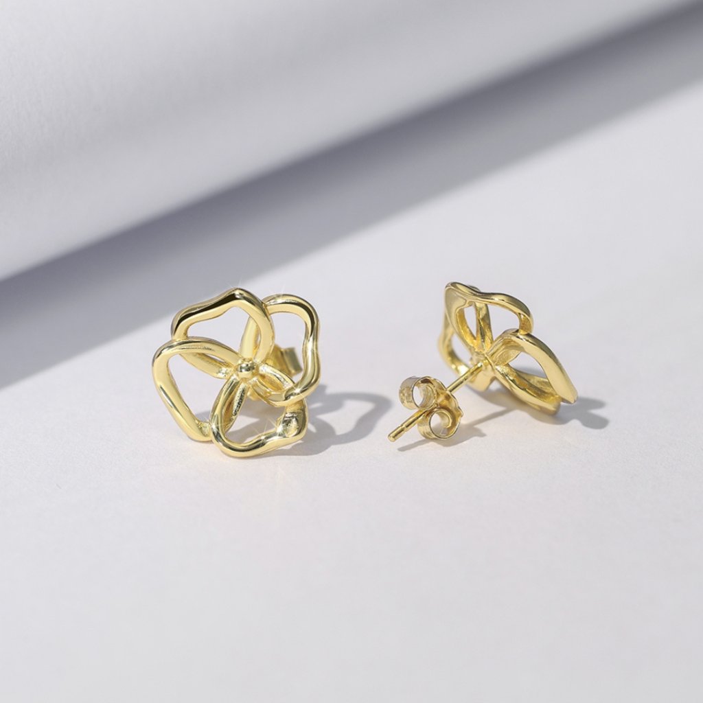Pozłacane srebrne kolczyki ZEA z motywem czterolistnej koniczyny wnoszą elegancję i wdzięk do codziennego życia, będąc jednocześnie symbolem szczęścia. Wykonane z wysokiej jakości srebra Ag925/1000, te kolczyki są pozłacane 14-karatowym złotem, co dodaje im luksusowego wyglądu i gwarantuje odporność na zużycie.