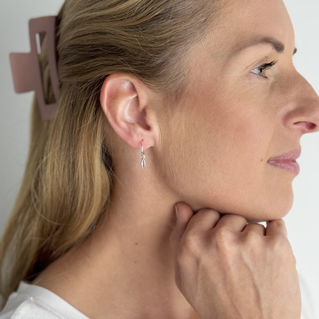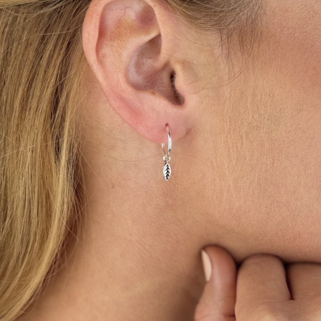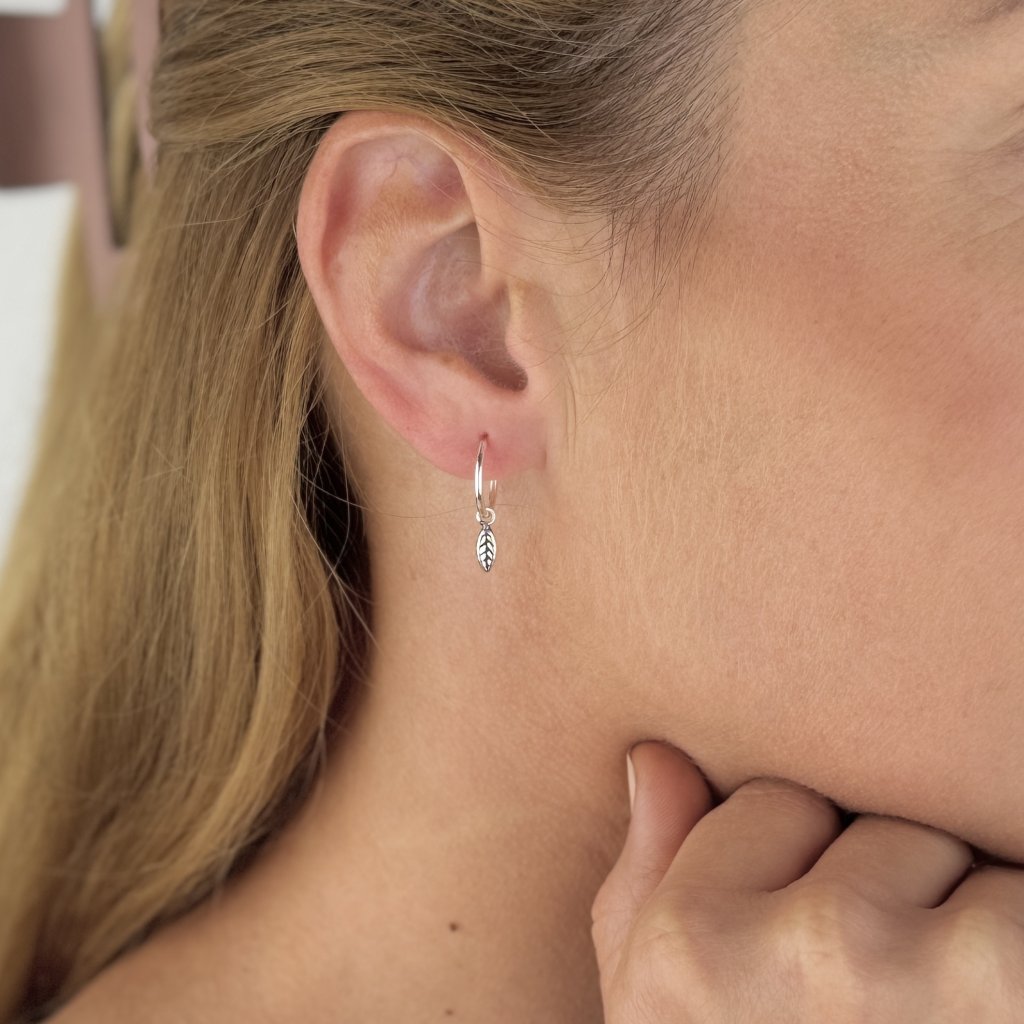 Każdy kolczyk ozdobiony jest zawieszką w kształcie listka, która dodaje biżuterii delikatności i naturalnego uroku. Dzięki średnicy koła 12 mm kolczyki są wystarczająco wyraziste, ale nadal dyskretne, co czyni je odpowiednimi zarówno na co dzień, jak i na specjalne okazje.