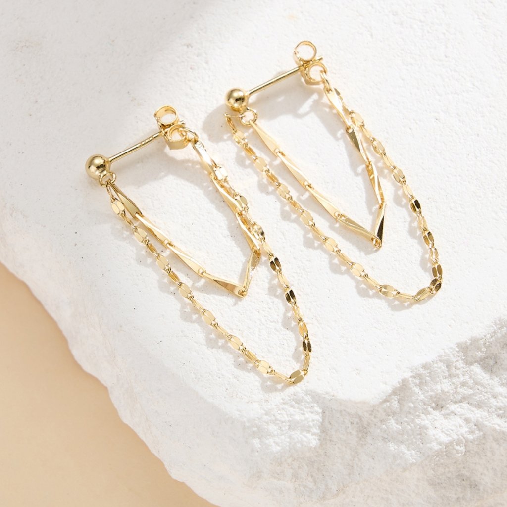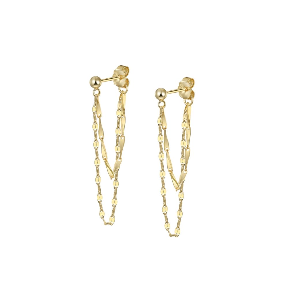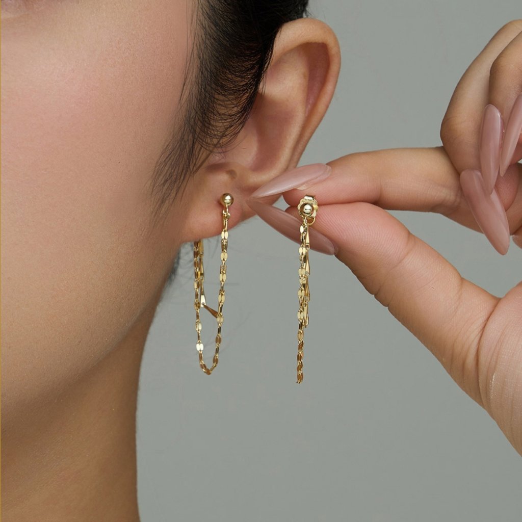 Srebrne kolczyki DARIANE pozłacane 14K złotem to biżuteria, która zachwyca lekkością i nowoczesnym designem. Delikatny kształt łańcuszka elegancko podkreśla linię szyi, tworząc niepowtarzalny ruch przy każdym kroku. Dzięki minimalistycznemu designowi doskonale pasują do codziennych stylizacji, jak i do wieczorowych kreacji – podkreślą Twoją urodę bez zbędnego przepychu.