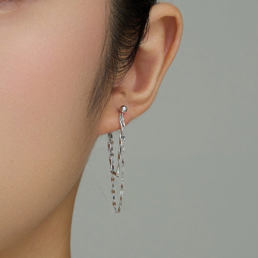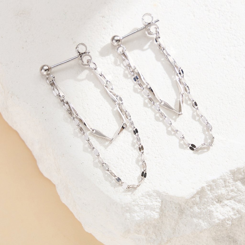 Srebrne kolczyki DARIANE łączą delikatność i nowoczesny design w postaci eleganckiego łańcuszka, który pięknie rozświetla się przy każdym ruchu. Wykonane są z wysokiej jakości srebra Ag925/1000, uzupełnionego o rodowanie dla zwiększenia odporności, ochrony przed ciemnieniem i długotrwałego blasku. Srebrne wykonanie podkreśla ich elegancki charakter, który pasuje zarówno do codziennych stylizacji, jak i na uroczyste okazje.