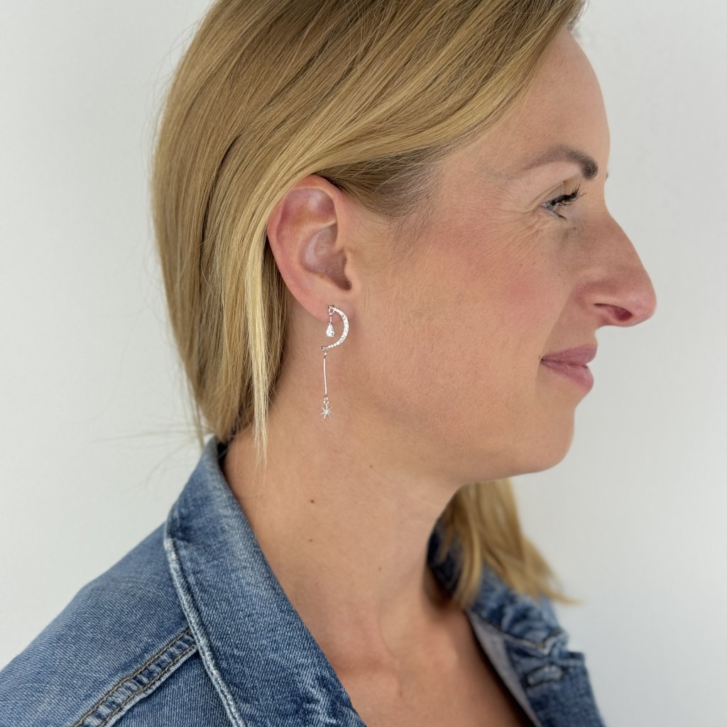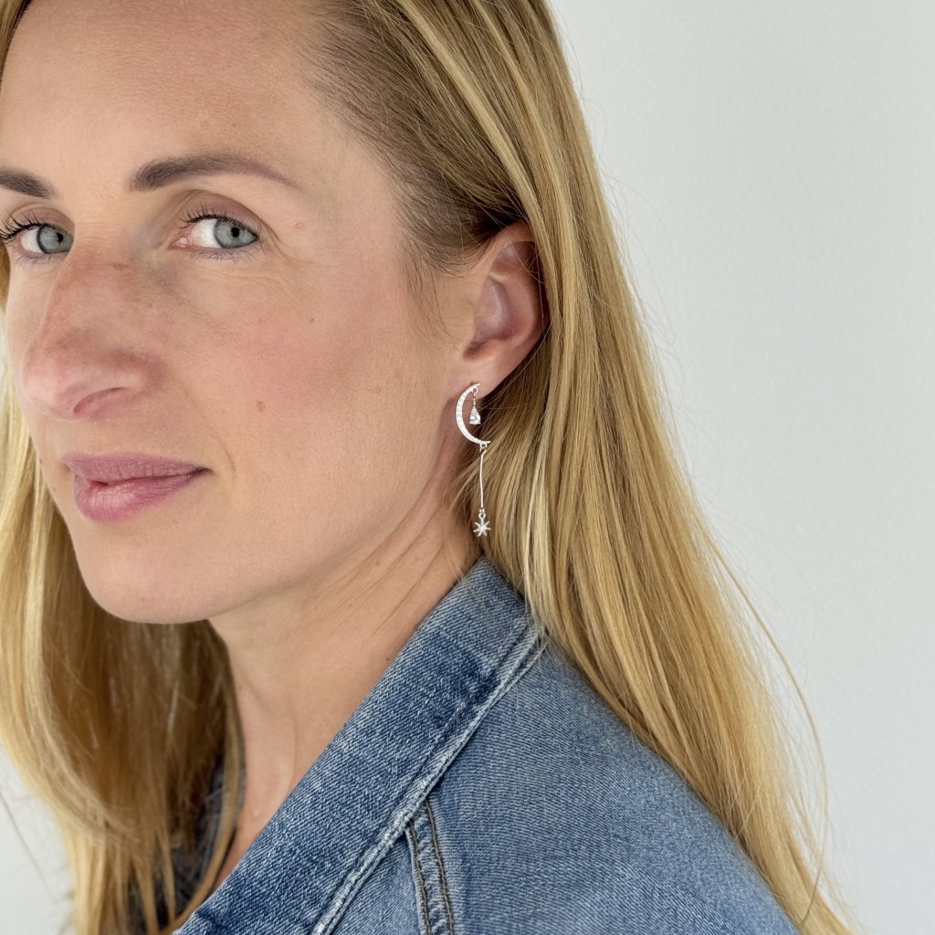 Kolczyki są dostarczane w pudełko upominkowe, który jest doskonałym wyborem na prezent dla siebie lub bliskiej osoby. Zamów te kolczyki z księżycem i gwiazdą i daj się oczarować ich urokowi i elegancji.