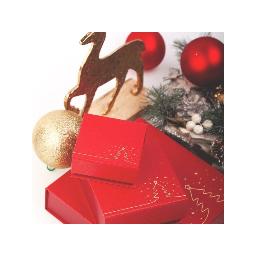 Jego wymiary wynoszą 50 × 47 × 40 mm, co jest idealnym rozmiarem do przechowywania pierścionka, kolczyków lub wisiorka. Pudełko zostało wykonane z wysokiej jakości papieru i jest dostępne w dwóch świątecznych kolorach - złotym i czerwonym.