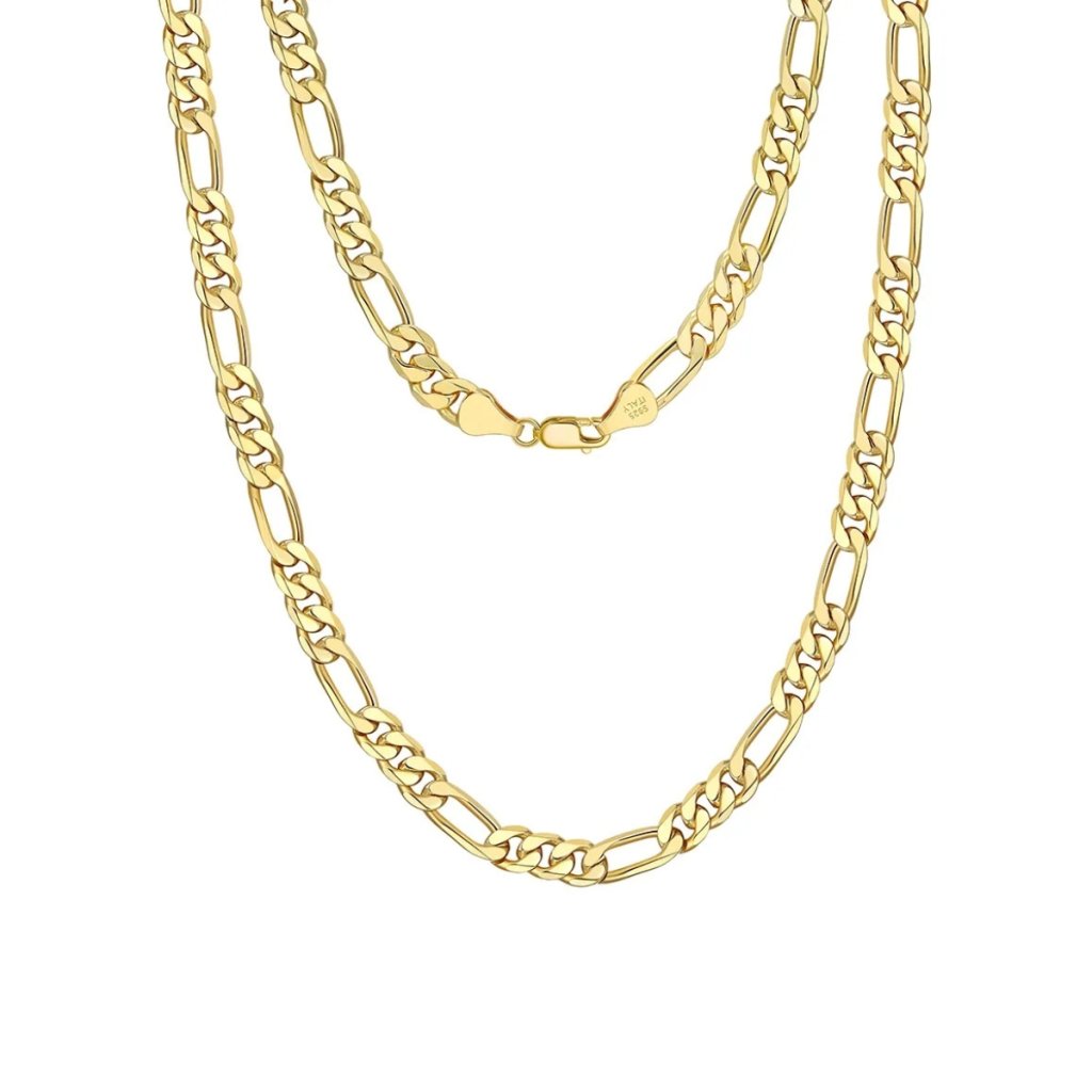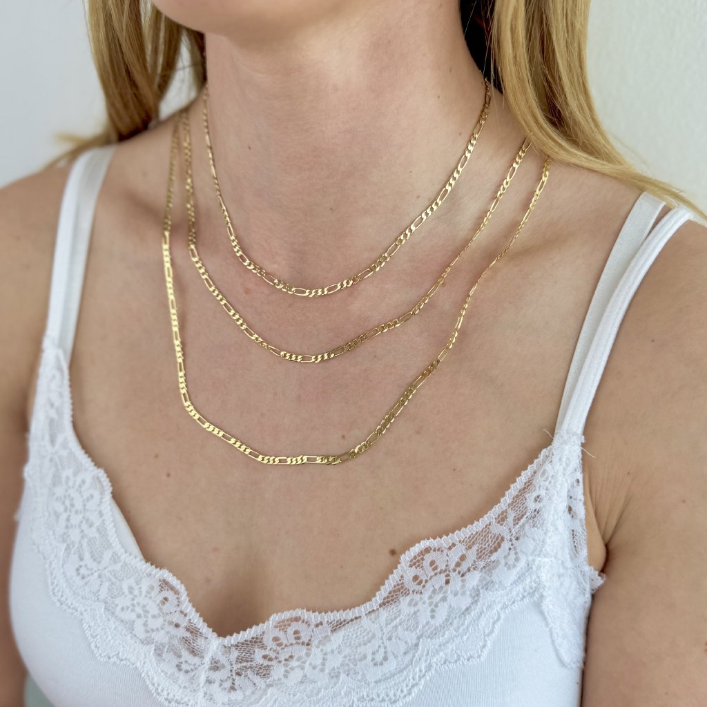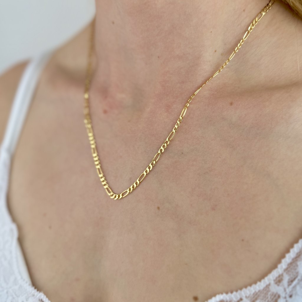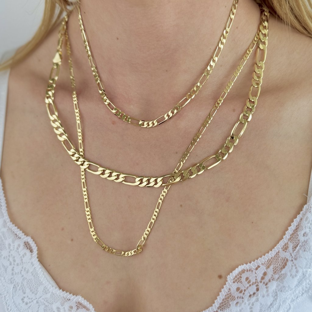 Pozłacany srebrny łańcuszek HAMIS typu Figaro to idealne połączenie luksusu i elegancji. O szerokości 3,3 mm i długości 50 cm tworzy wyrazisty wygląd, który z pewnością zostanie zauważony. Klasyczny wzór Figaro w połączeniu z 18-karatowym złoceniem dodaje łańcuszkowi nuty luksusu i wyjątkowości.