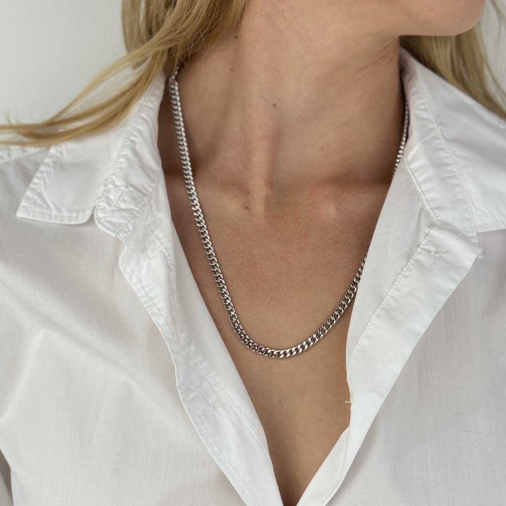 Srebrny łańcuszek DEVON typu Cuban to prawdziwy symbol siły i luksusu. Jego imponująca szerokość 5 mm tworzy nieprzeciętny, a zarazem elegancki dodatek. Łańcuszek wykonany jest z wysokiej jakości srebra próby 925/1000 i pokryty rodem, co zapewnia długotrwały połysk i ochronę przed utlenianiem.