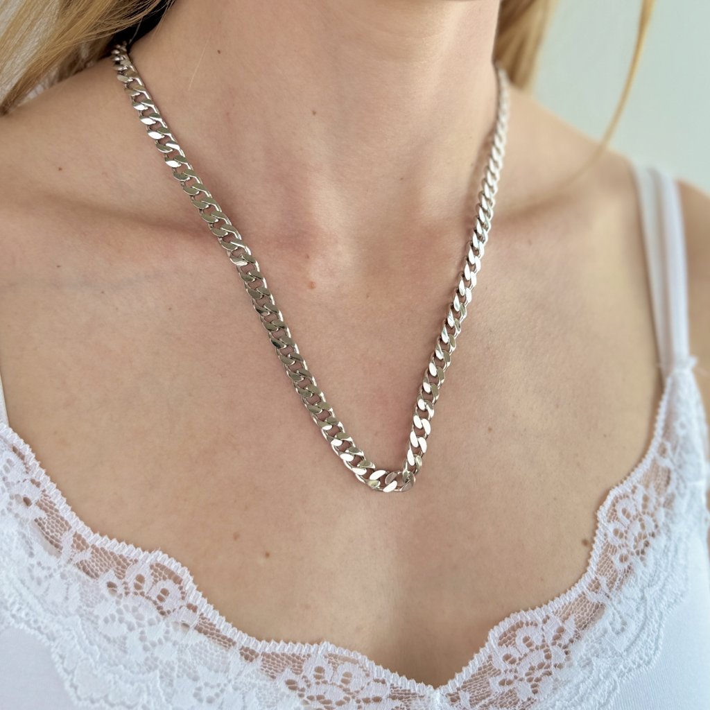 Srebrny łańcuszek TADEAS typu Cuban to ucieleśnienie siły i dominacji. Jego wyjątkowa szerokość 7 mm czyni go naprawdę wyjątkową biżuterią. Wykonany jest z wysokiej jakości srebra próby 925/1000 i pokryty rodem, co zapewnia długotrwały połysk i ochronę przed utlenianiem.