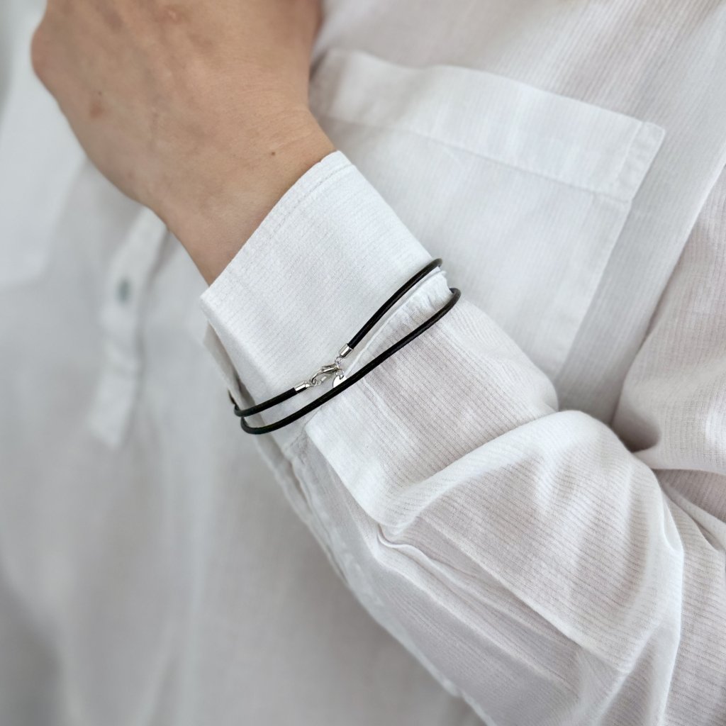 Długość 60 cm umożliwia wykorzystanie jako naszyjnik i bransoletka. Szerokość 2 mm prezentuje się dyskretnie i nadaje się do codziennego noszenia. Sznurek można nosić samodzielnie lub ozdobić zawieszką według własnego gustu. To idealny wybór dla kobiet i mężczyzn, którzy szukają minimalistycznego, a zarazem wyrazistego dodatku. Dostarczany w eleganckim pudełku upominkowym.