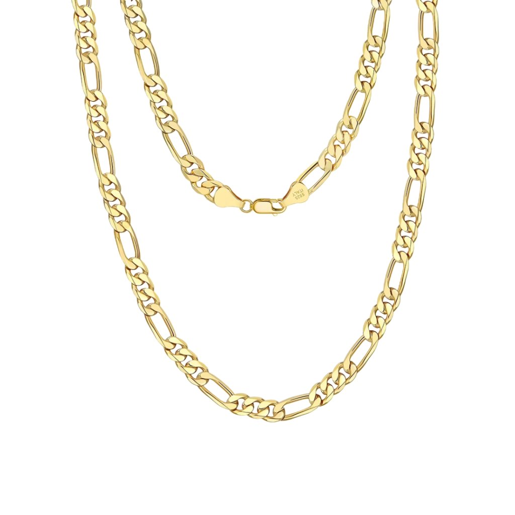 Pozłacany srebrny łańcuszek HAMIS to doskonałe połączenie luksusu i ponadczasowości. Jego imponująca długość 65 cm i szerokość 7 mm tworzą majestatyczny wygląd, który podkreśla osobowość noszącego. Klasyczny wzór Figaro w połączeniu z 18-karatowym złoceniem nadaje łańcuszkowi nutę wyjątkowości.